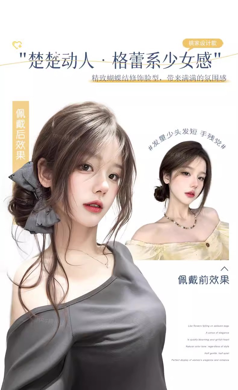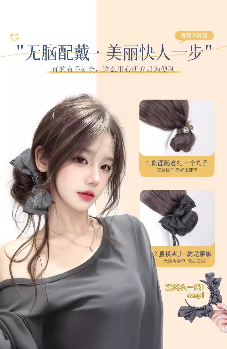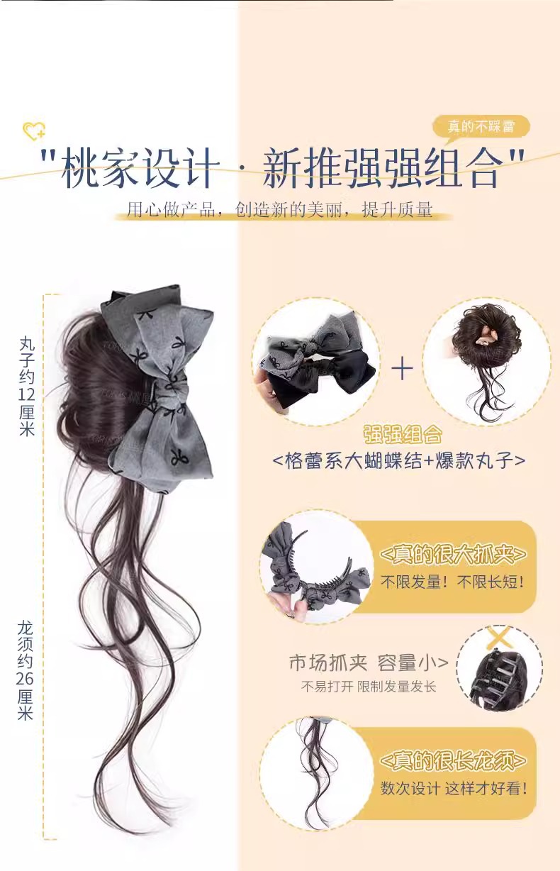 활 가발 그랩 클립 여성의 머리 분위기 긴 수염 공 헤어 클립 그레이 사이드 로우 포니 테일 헤드웨어
