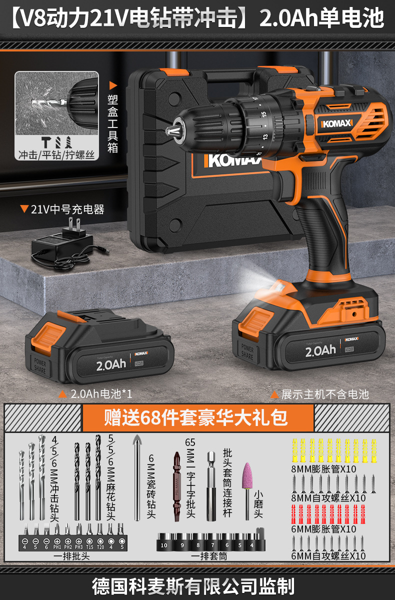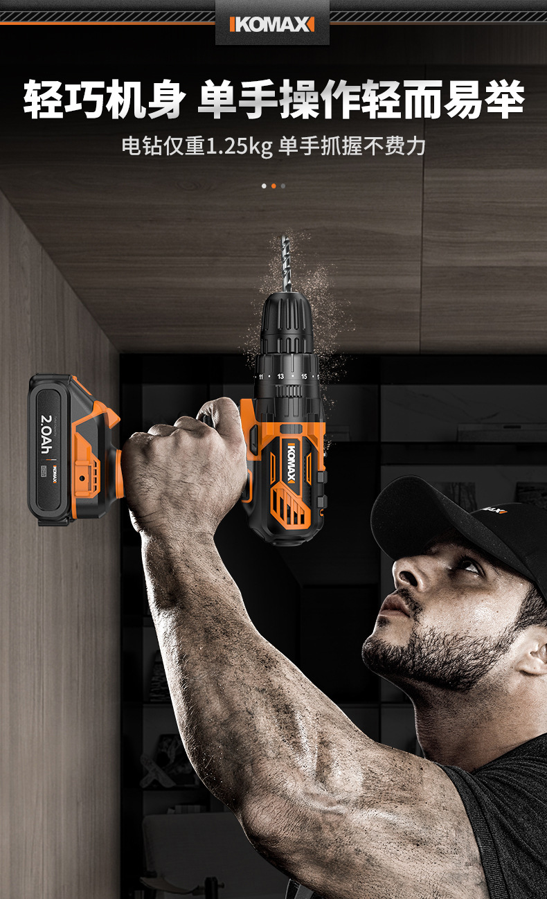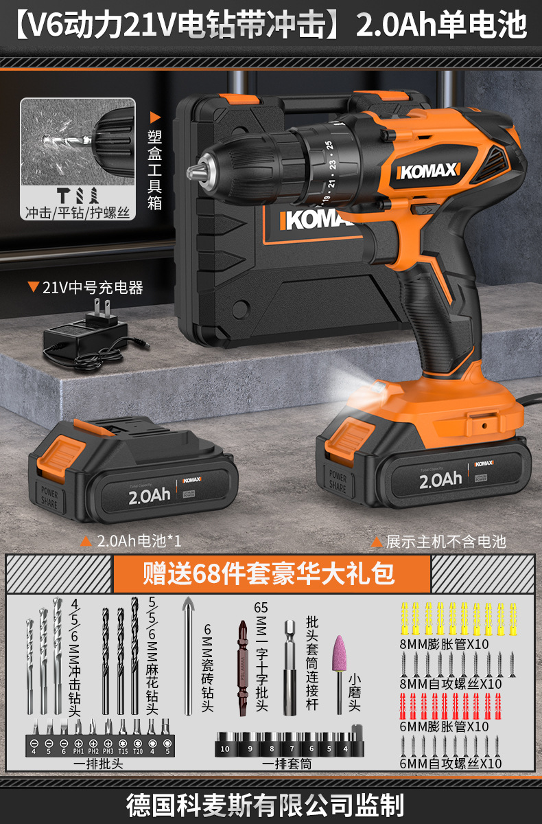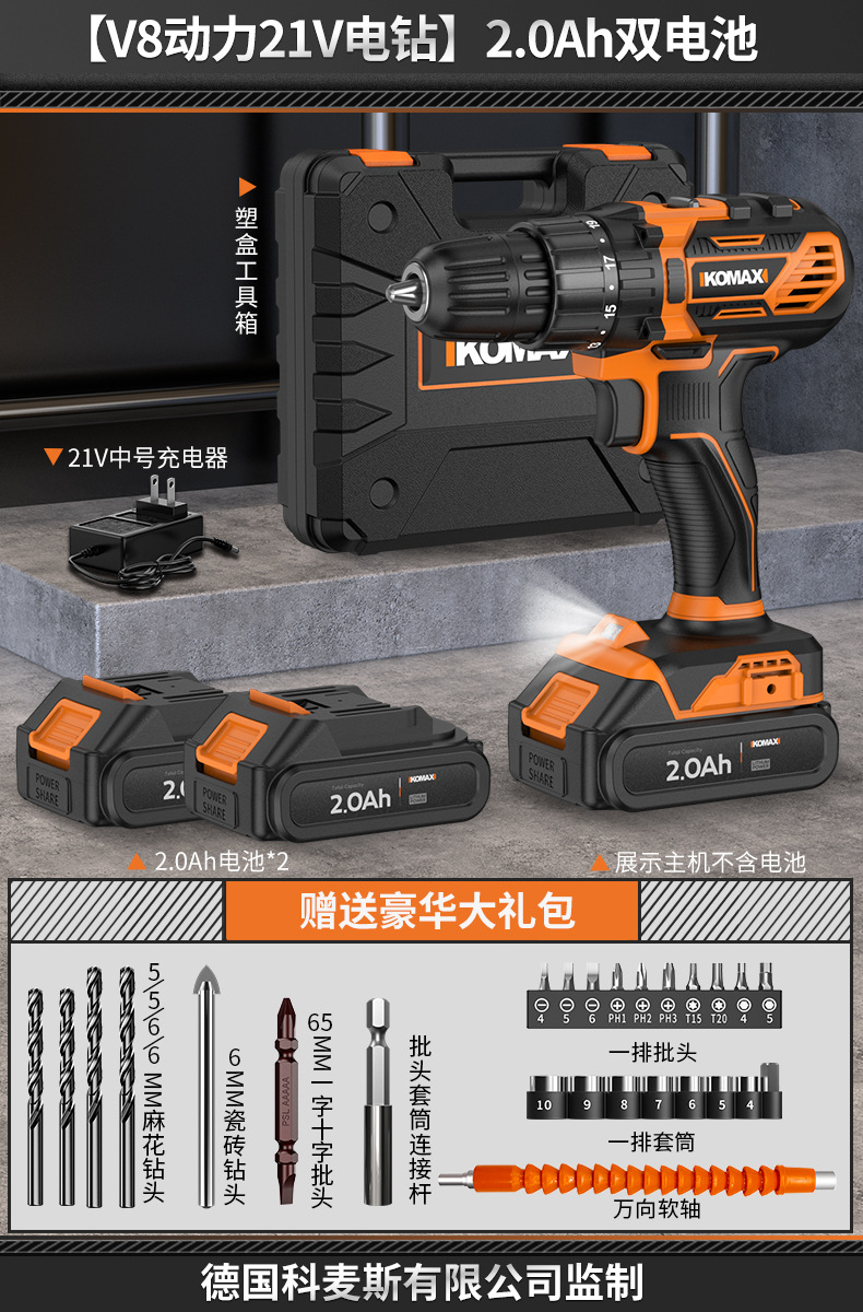 • [임팩트가 있는 V6 파워 21V 전기 드릴] 2.0Ah 듀얼 배터리