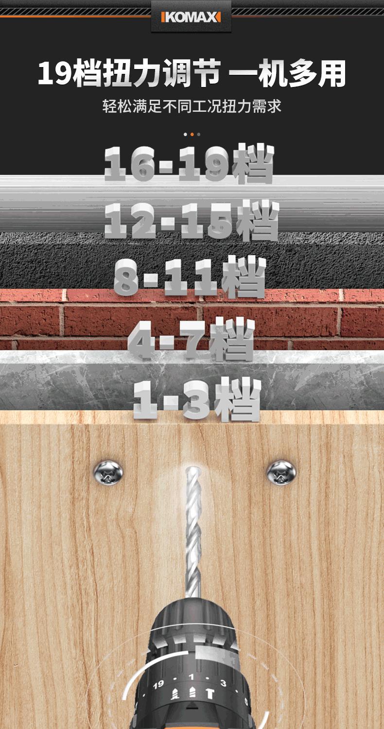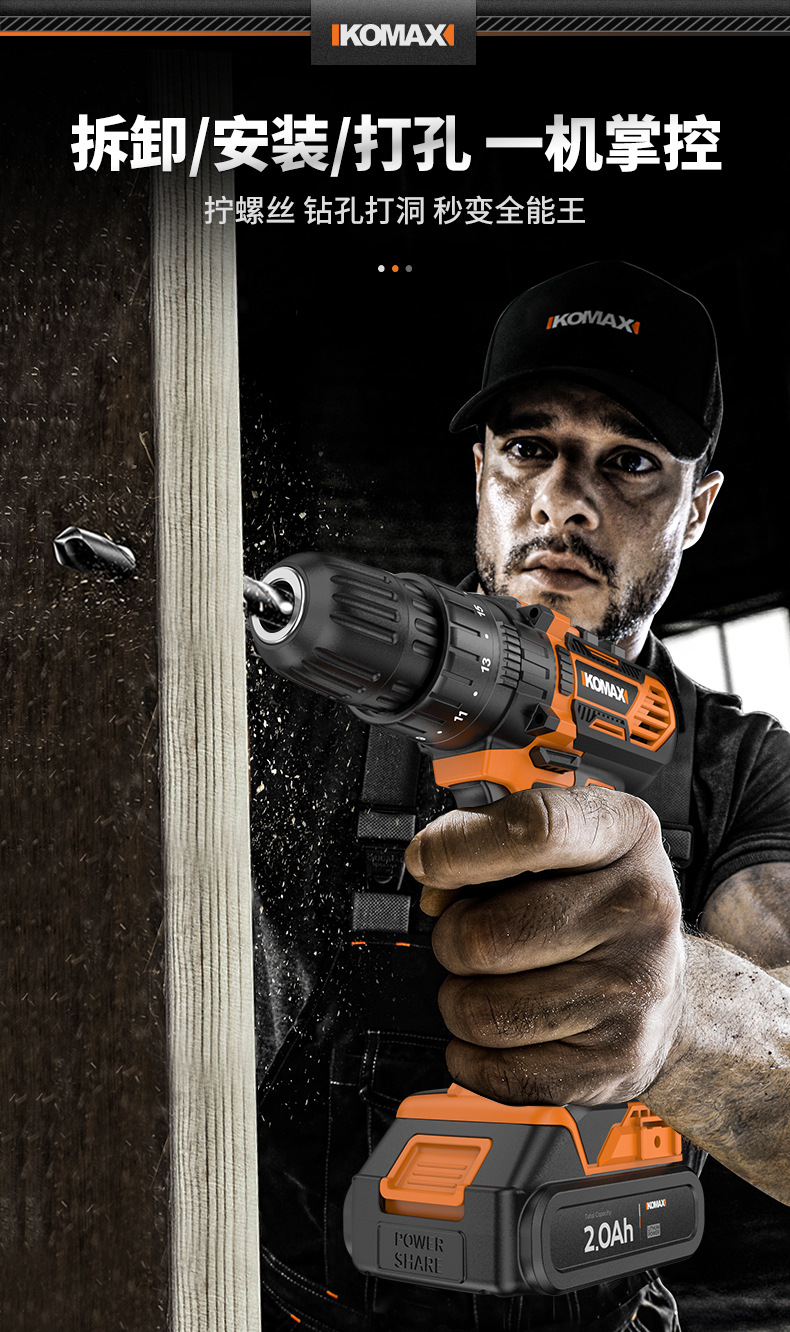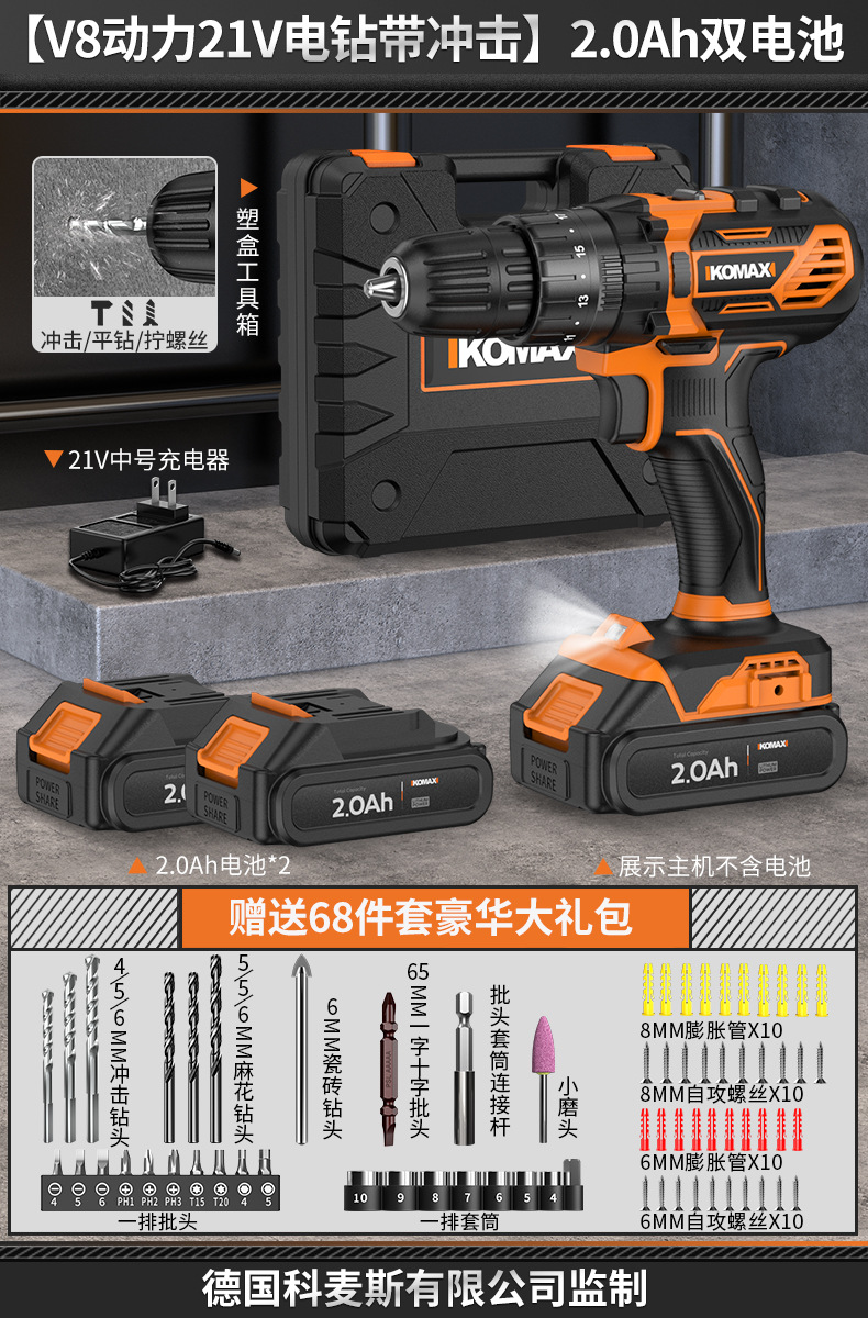 • [임팩트가 있는 V6 파워 21V 전기 드릴] 2.0Ah 듀얼 배터리