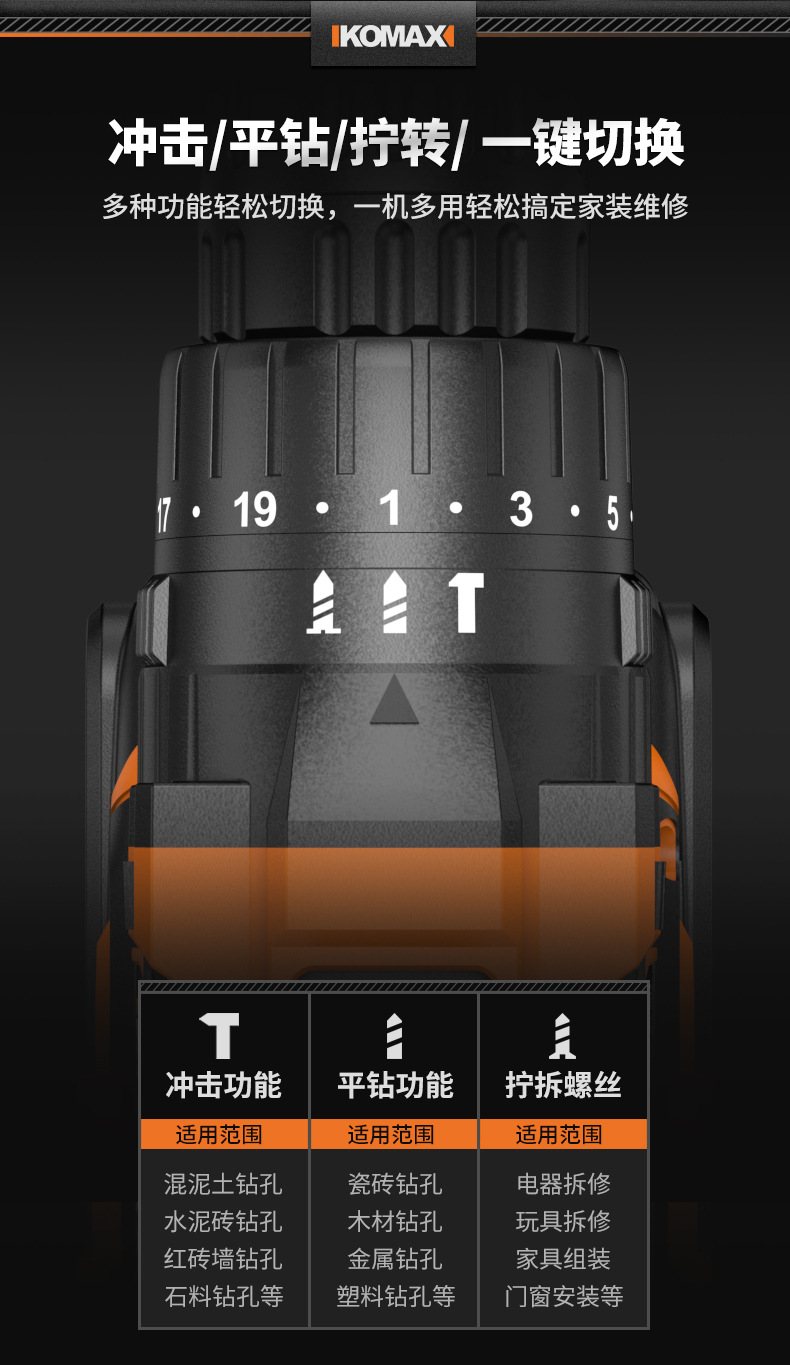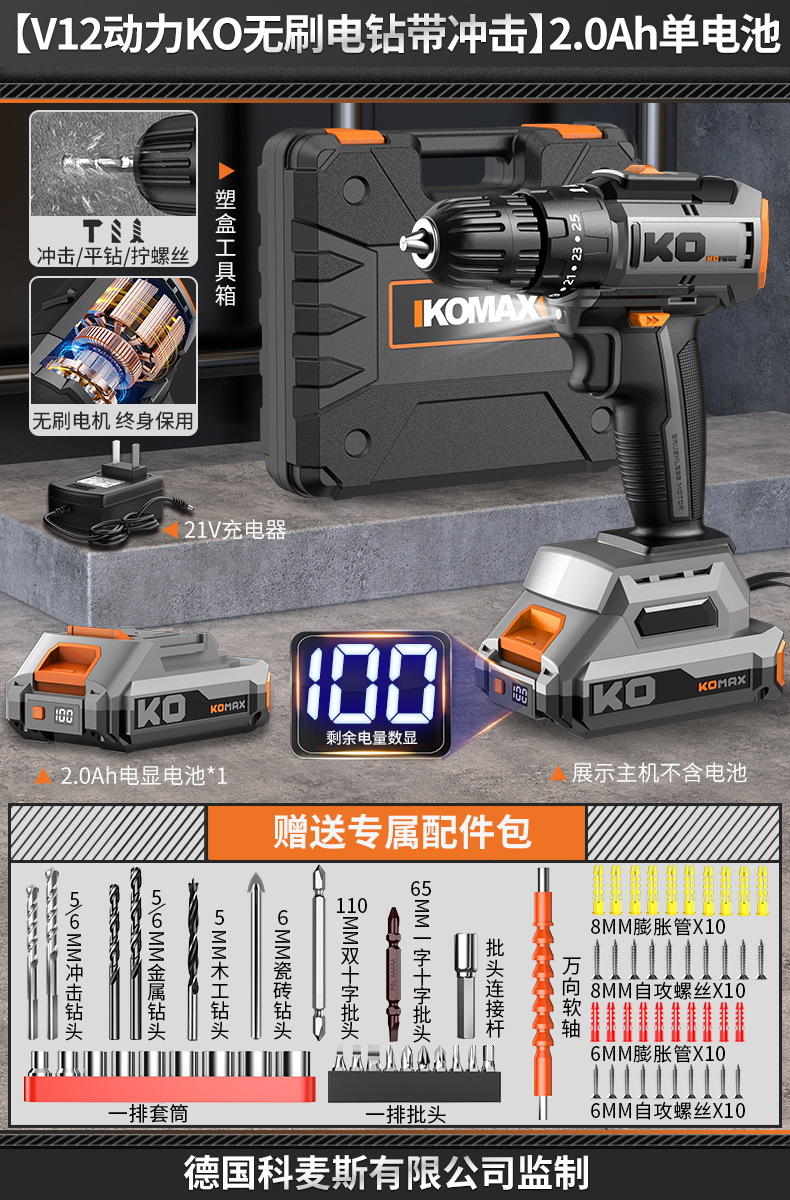 • [V12 파워 KO 브러시리스 전기 드릴] 2.0Ah 단일 배터리