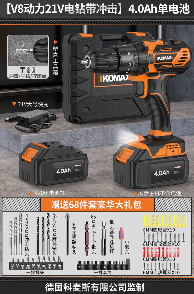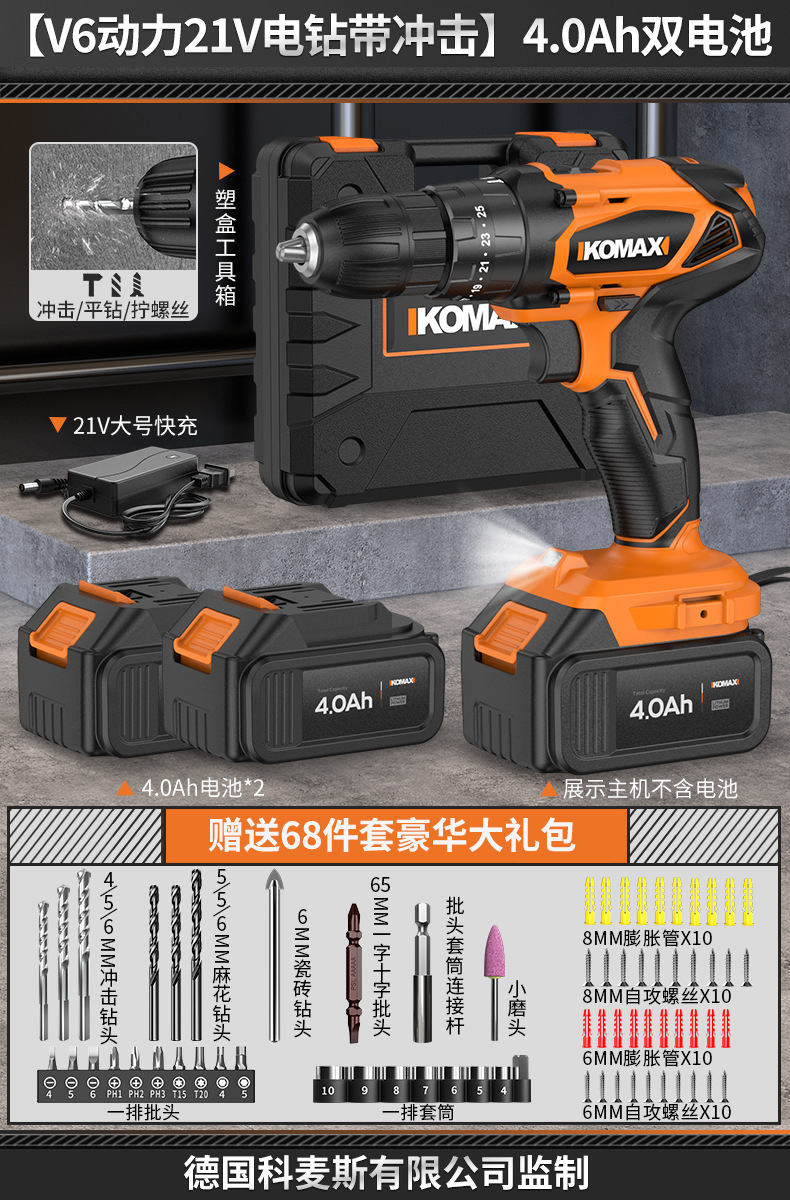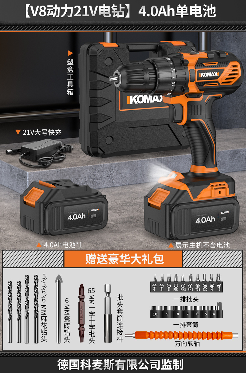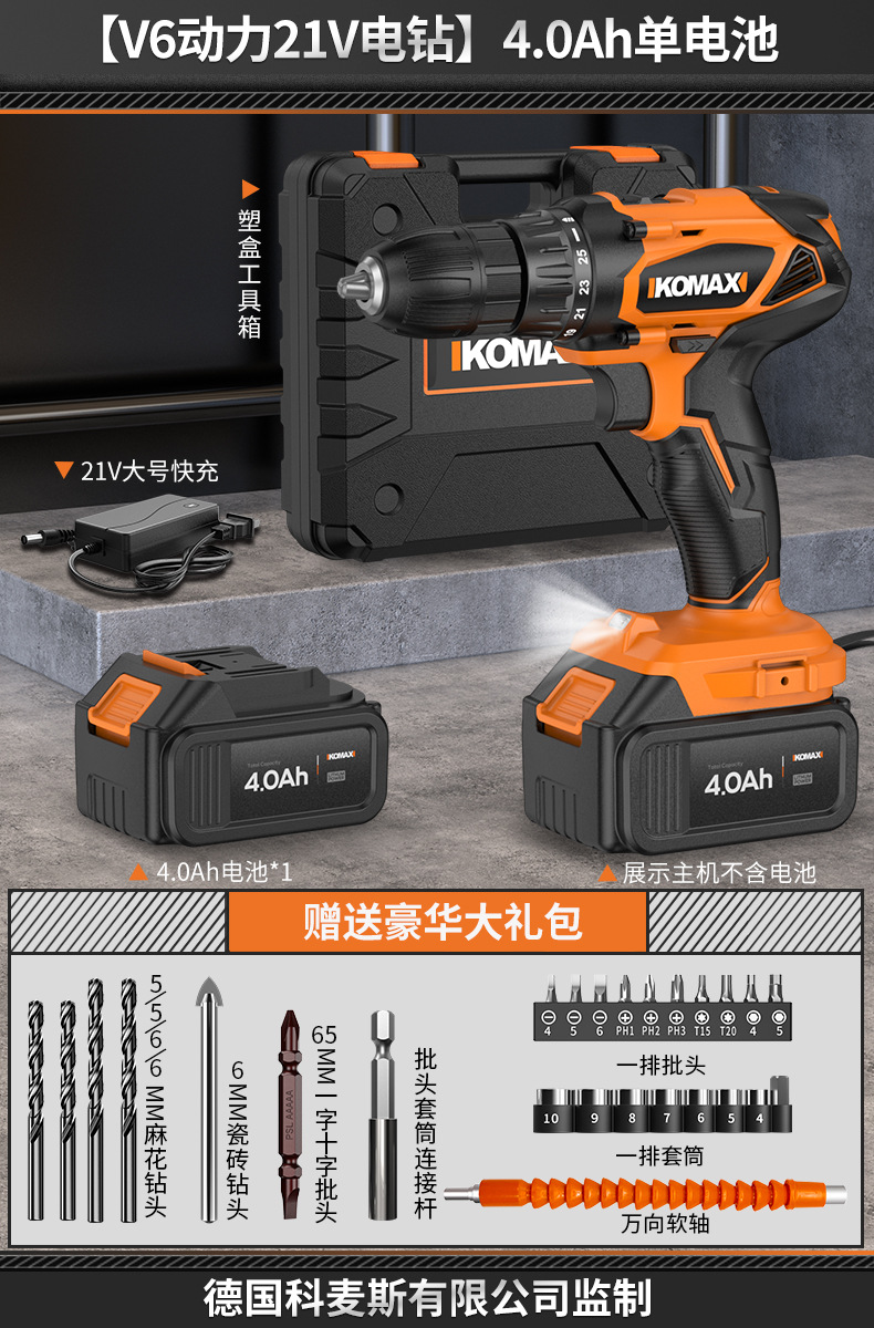• [임팩트가 있는 V6 파워 21V 전기 드릴] 4.0Ah 듀얼 배터리