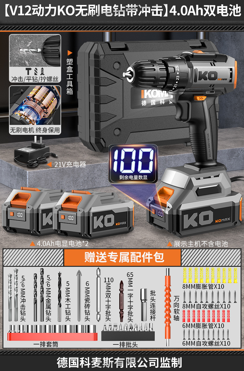 • [V12 파워 KO 브러시리스 전기 드릴] 4.0Ah 단일 배터리