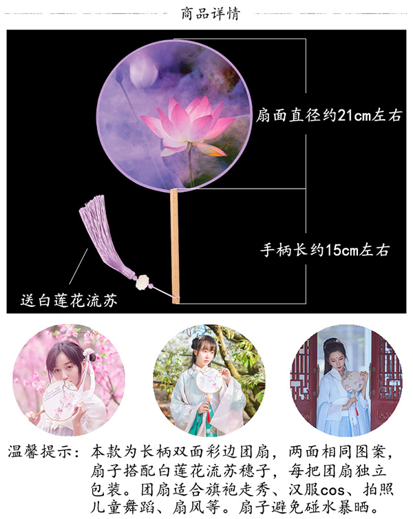 양면 라운드 팬 클래식 팬 중국 스타일 한푸 팬 레트로 라운드 팬 여성 팬 어린이 댄스 팬 Laitu Tingsheng스토어 가기