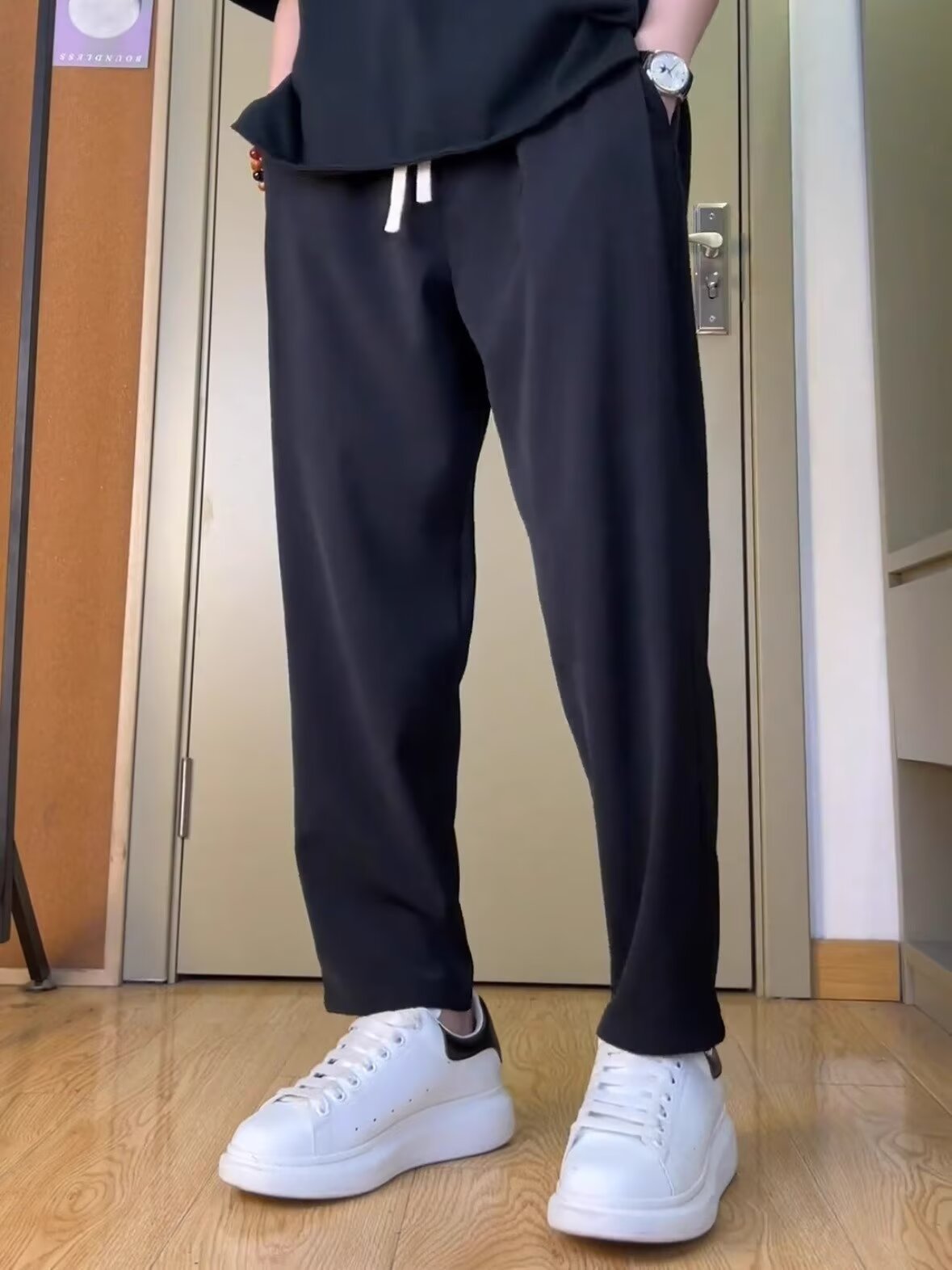 여름 새 두부 바지 남자 간단한 디자인 두부 캐주얼 바지 남자 스트레이트 바지 마이크로 콘 올매치 롱 바지스토어 가기