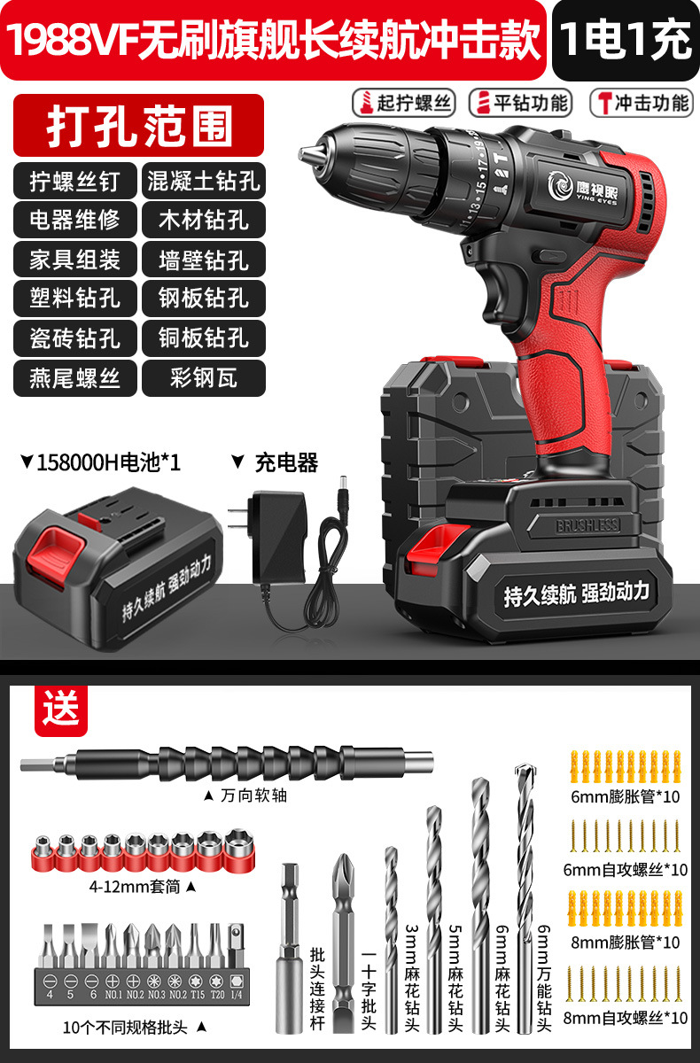 • 1988VF [브러시리스 플래그십 장수명 임팩트 모델] 배터리 1개 + 비트