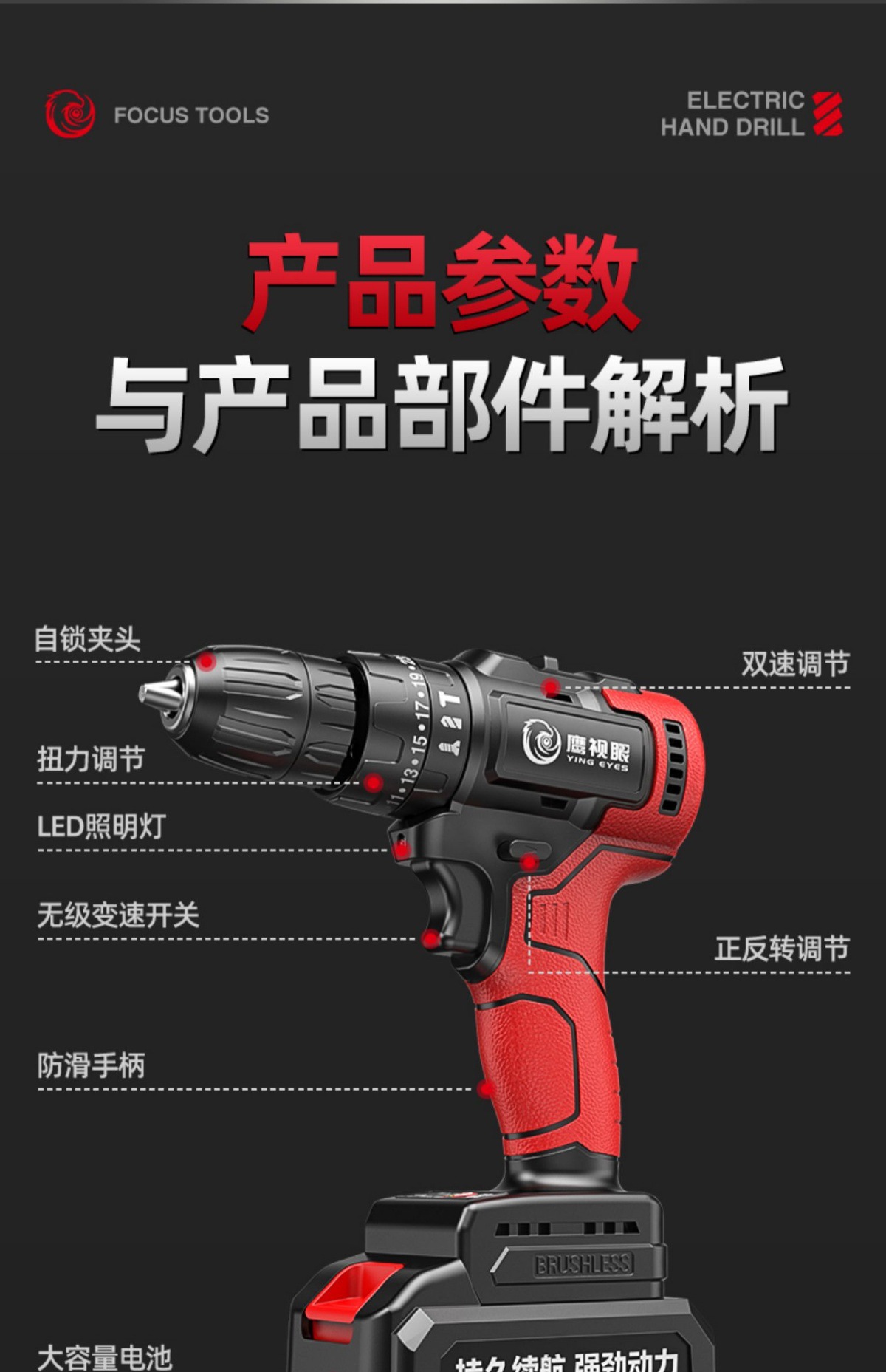 브러시리스 전기 핸드 드릴 충전식 핸드 드릴 작은 핸드 건 드릴 리튬 전기 드릴 다기능 가정용 전기 스크루 드라이버 전기 핸드 드릴