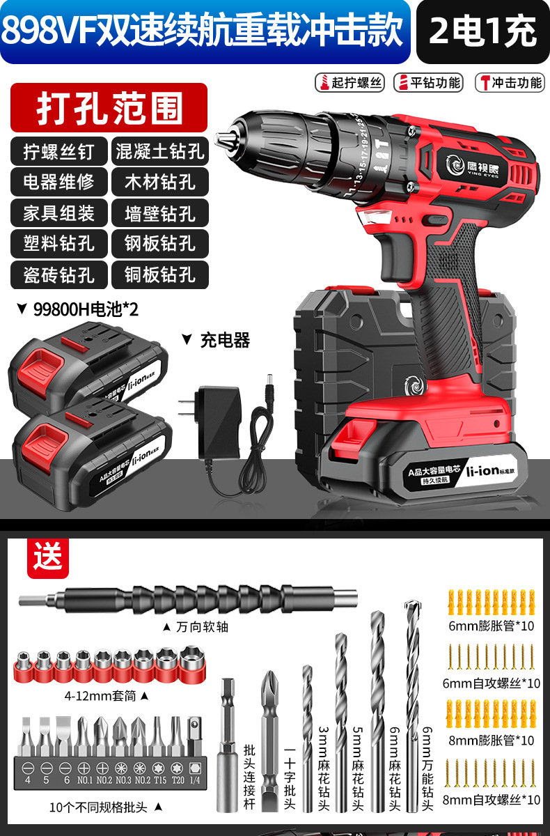 • 898VF [2단 중부하 임팩트 모델] 배터리 2개 + 비트