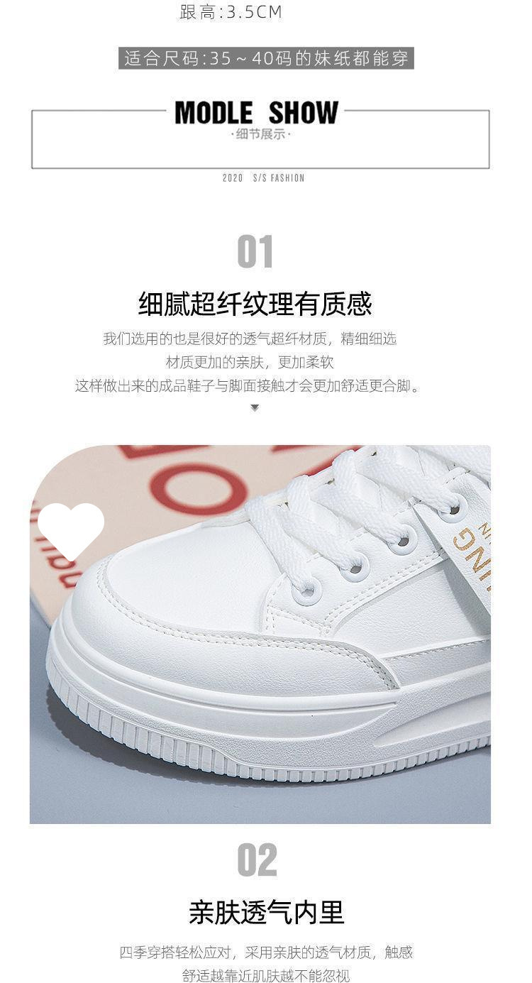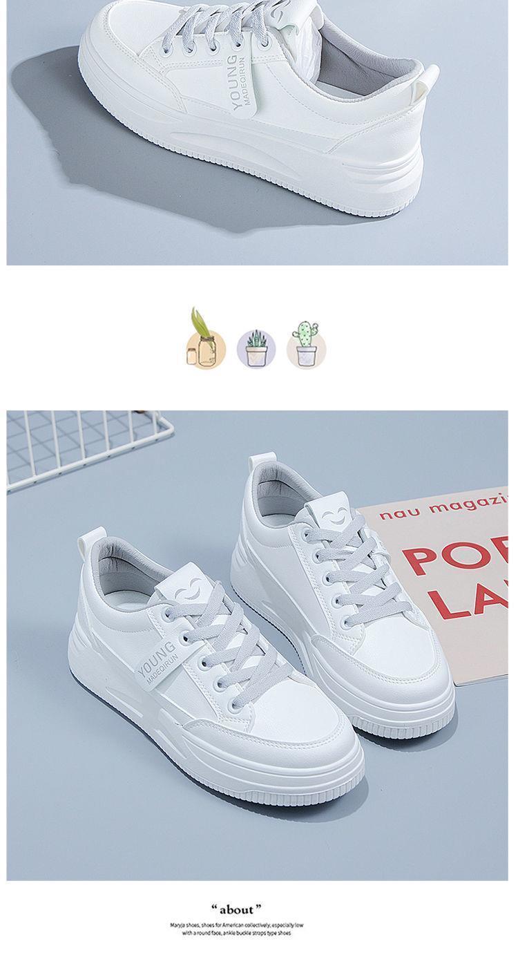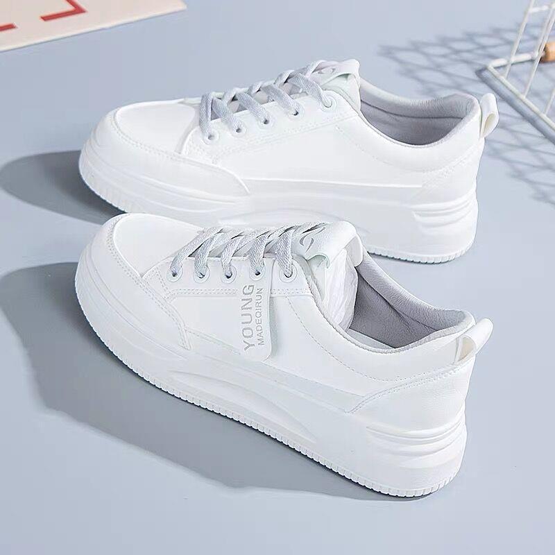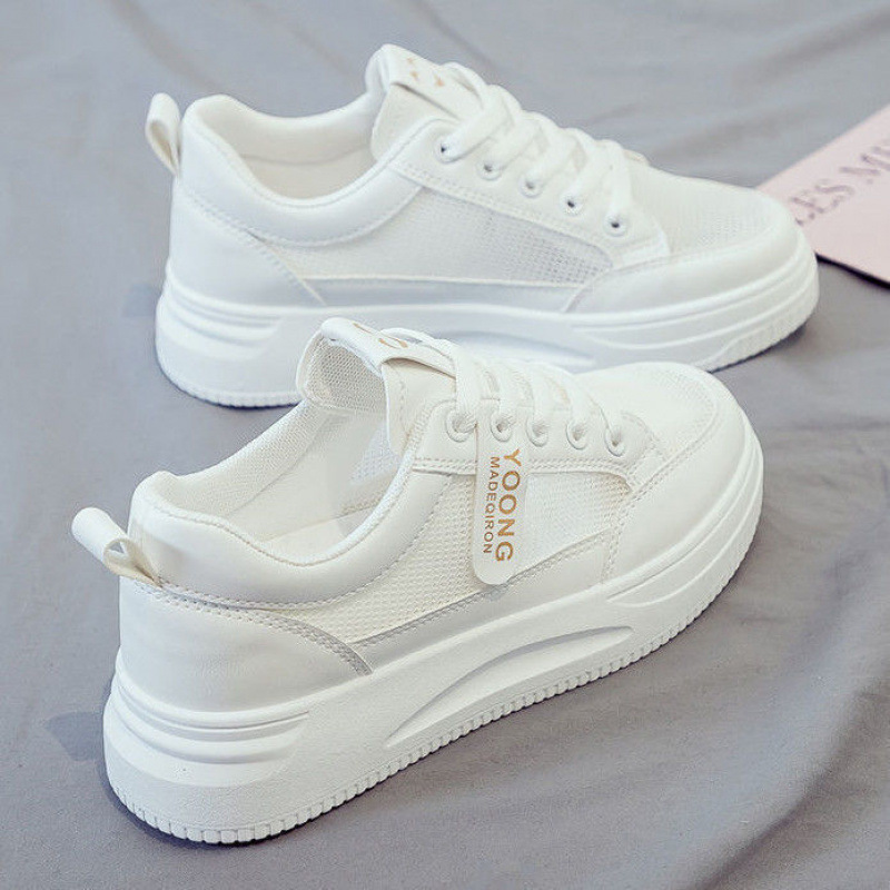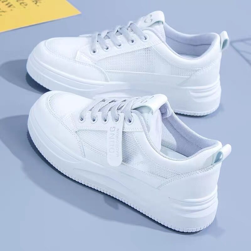 흰색 신발 여성의 여름 2024 봄과 여름 새로운 모든 경기 폭발 학생 플랫 캐주얼 두꺼운 단독 증가 통기성 보드 신발스토어 가기