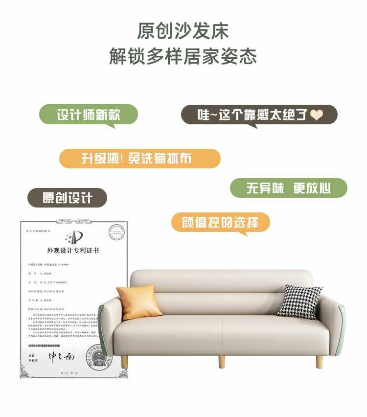 작은 아파트 거실 임대 방 간단한 현대 고양이 스크래치 천 다기능 접이식 소파 이중 사용
