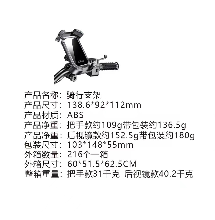 전기 자동차 휴대 전화 브래킷 오토바이 내비게이션 테이크 아웃 라이더 자동차 배터리 자동차 자전거 고정 휴대 전화 브래킷