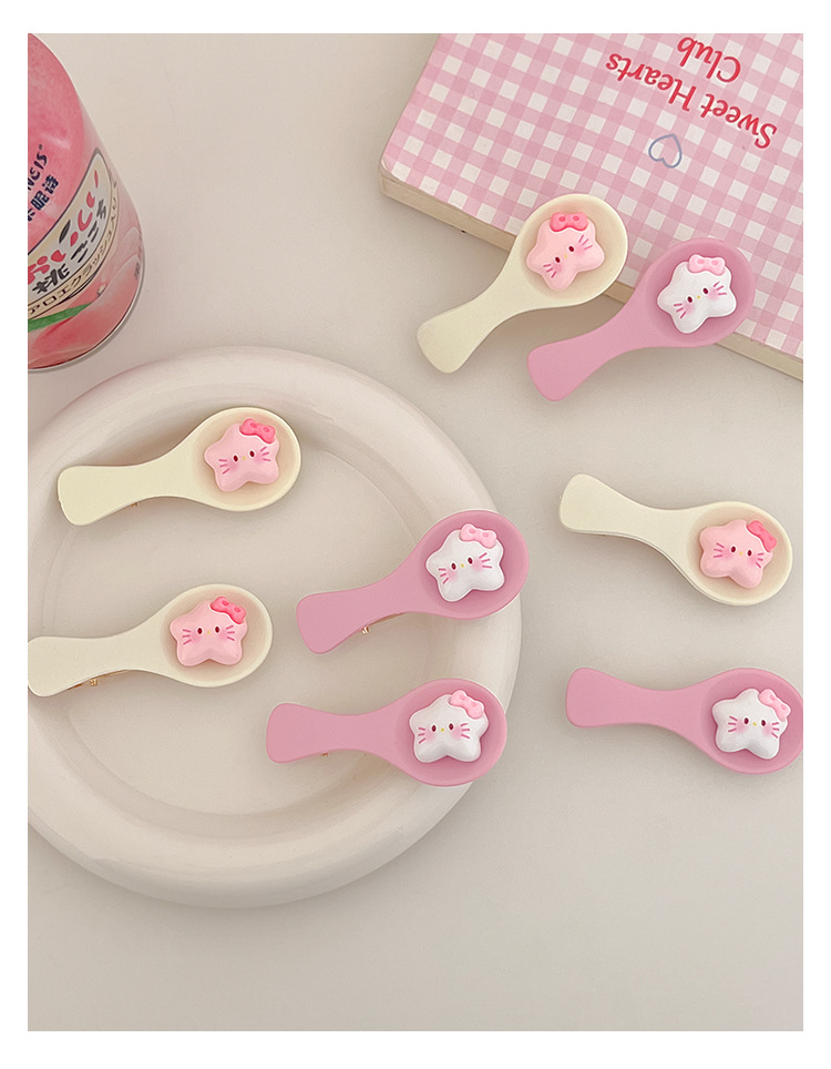 여름 귀여운 핑크 고양이 숟가락 헤어핀 만화 스타 덕빌 클립 달콤한 소녀 뱅 헤어 액세서리