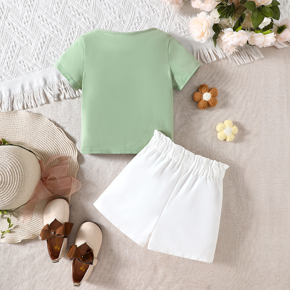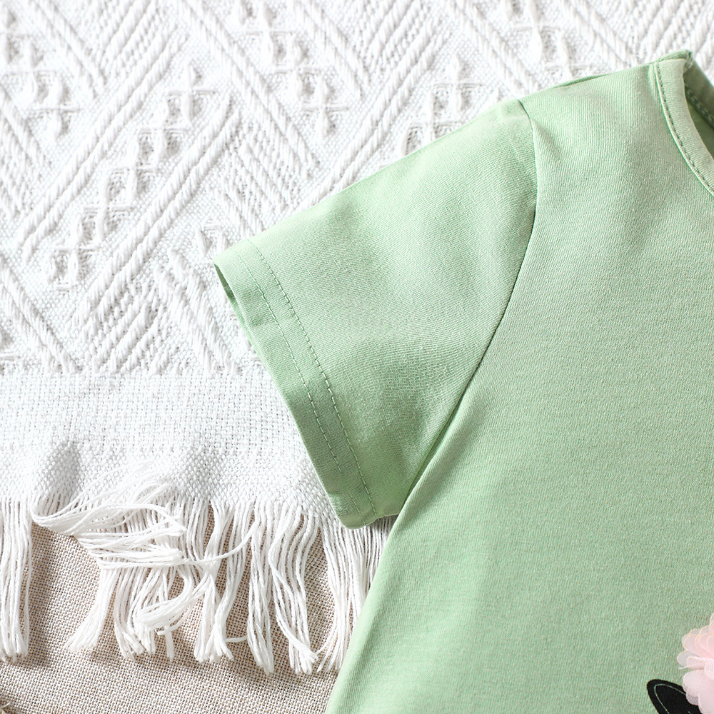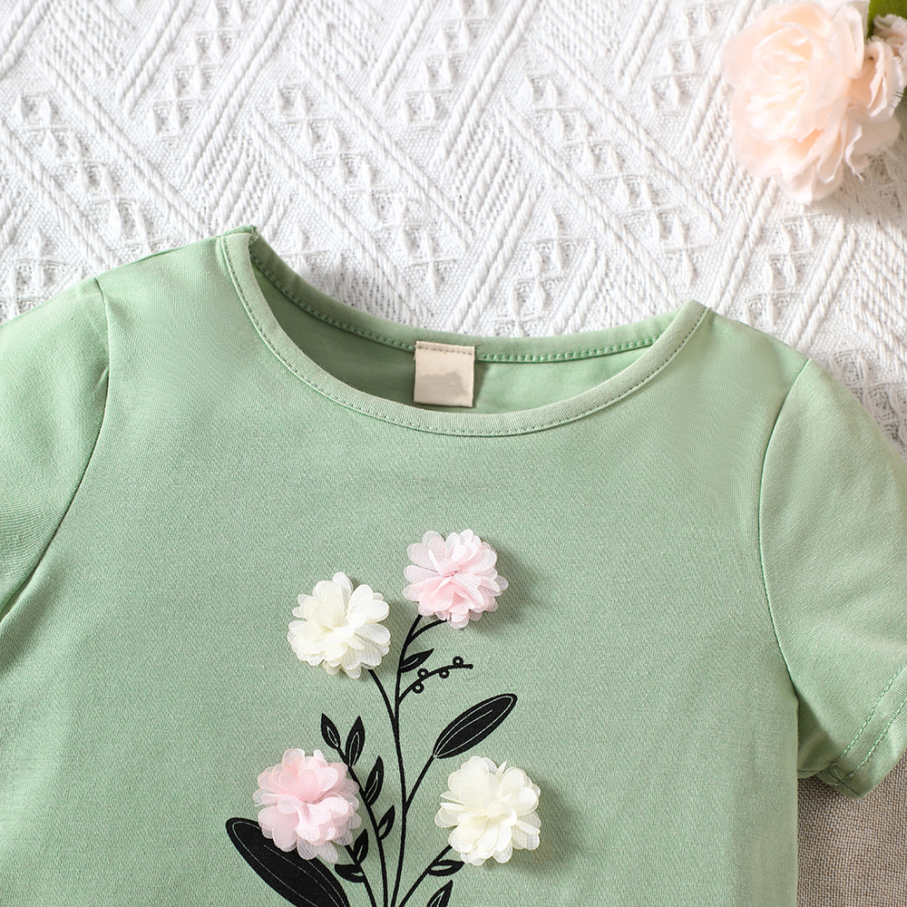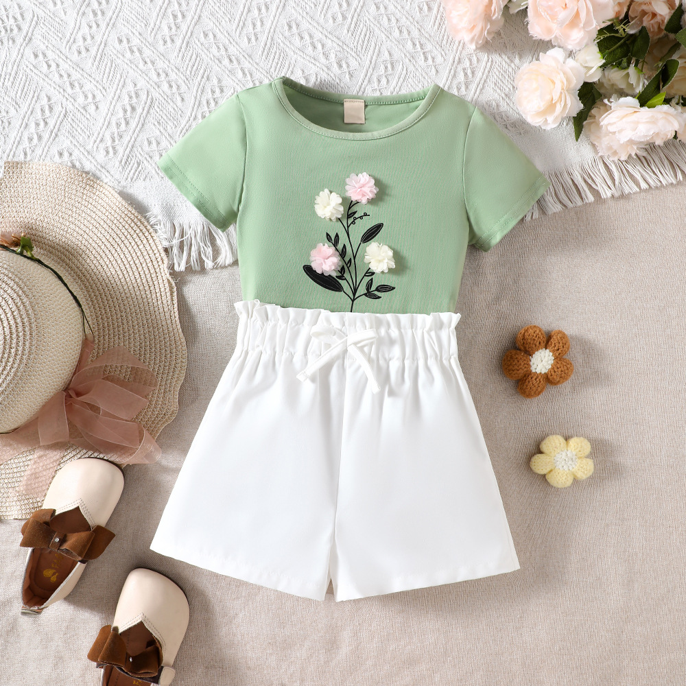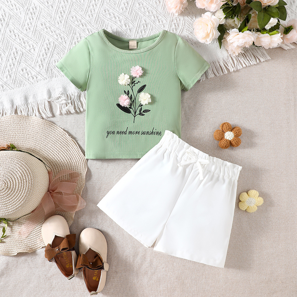 EW 대외 무역 아동복 중소 어린이 소녀 봄과 여름 새로운 입체 꽃 티셔츠 반바지 캐주얼 세트 TZ1394-D