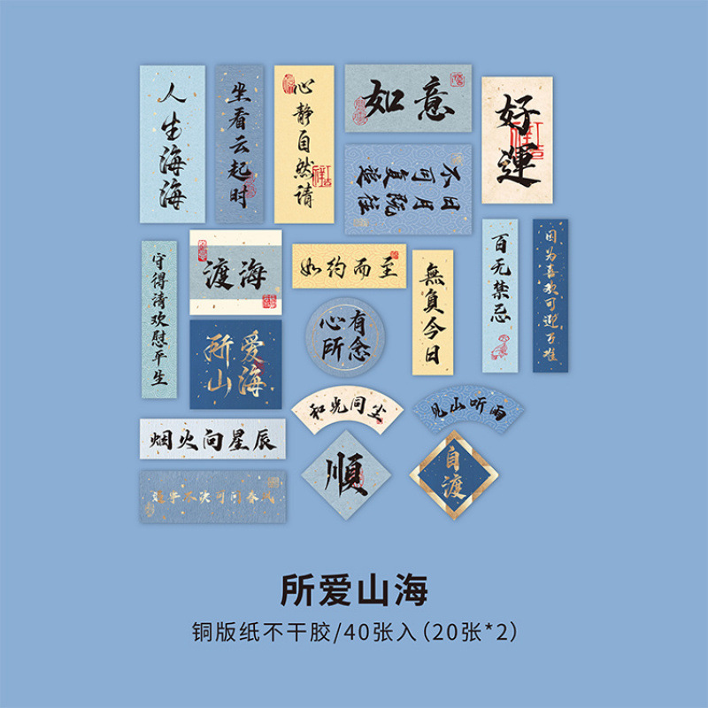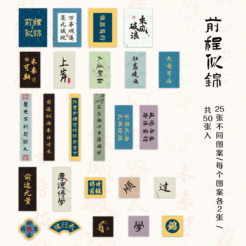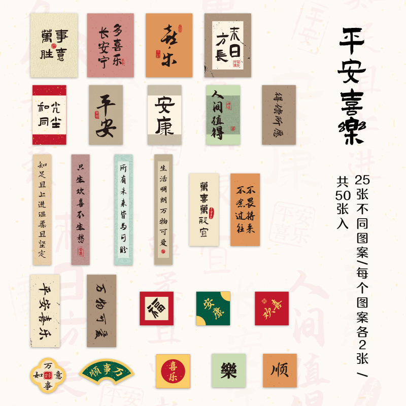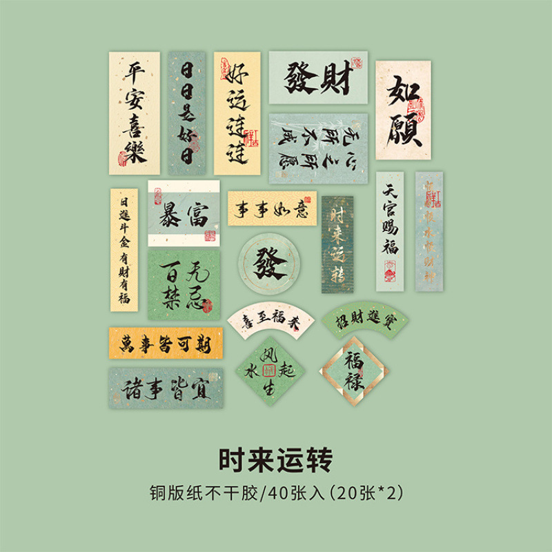 골동품 Huanxi 연구 브론징 박스 핸드 계정 스티커 스트로크 서예 축복 텍스트 손 계정 자료 스티커스토어 가기