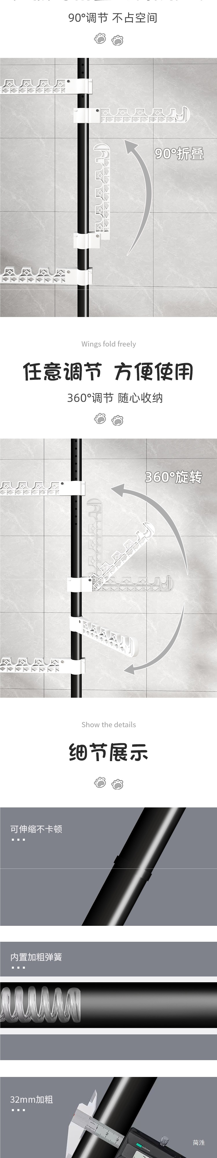 • 업그레이드 굵은 3.1m [매트 블랙 ❤ 날개 10개】용량 증가