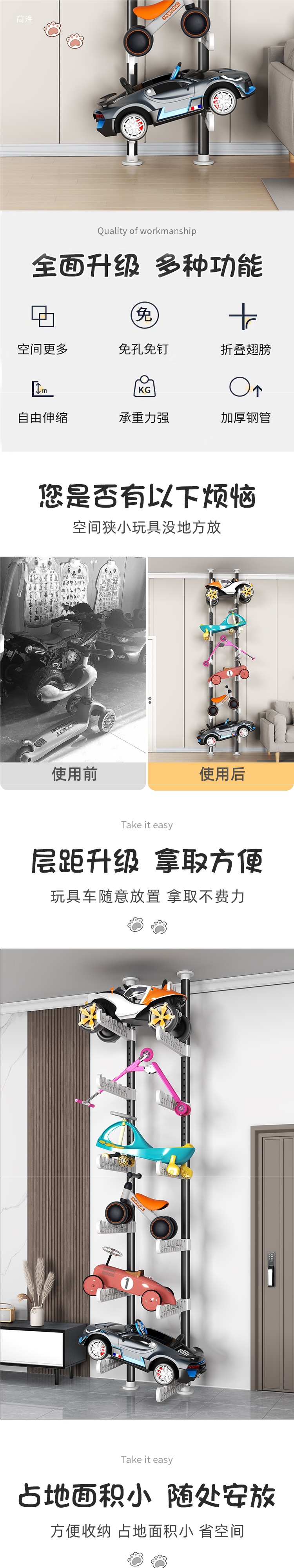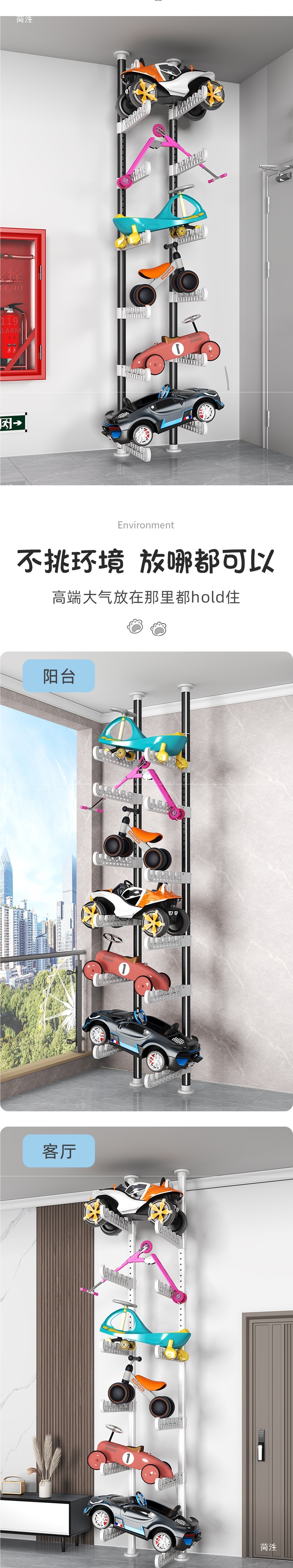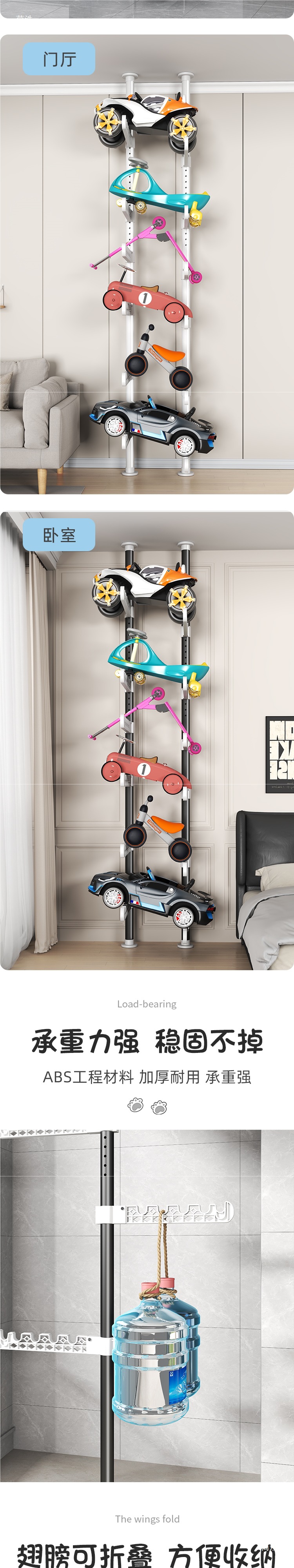 지상에서 천장까지 장난감 자동차 바닥 스토리지 랙 다층 거실 어린이 자전거 균형 자동차 스케이트 보드 스토리지 랙
