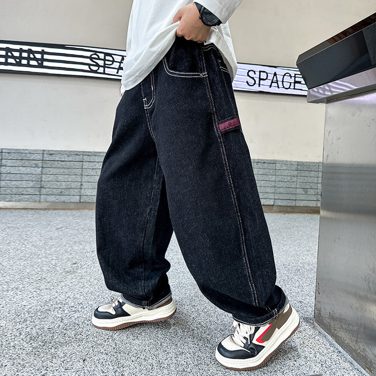 소년의 단색 청바지 2025 봄과 가을 새로운 한국 스타일 바지 큰 소년 유행 유행 멋진 직선 다리 바지스토어 가기
