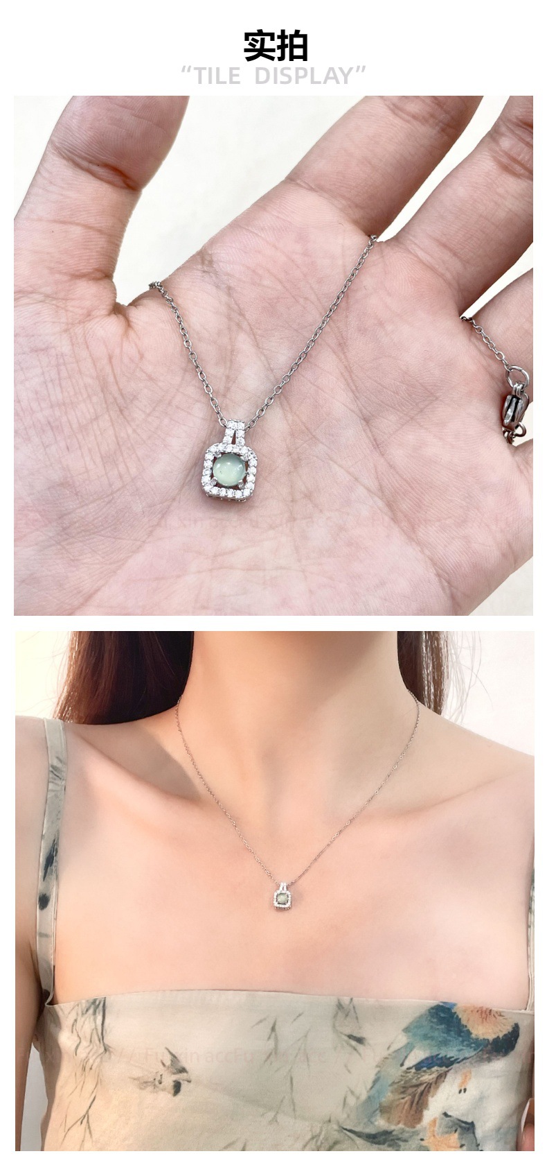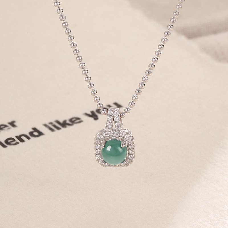 레드 라이딩 북 폭발성 쿨 센스 자연 위험 소재 블루 워터 에메랄드 스퀘어 펜던트 목걸이 여성을위한 가벼운 럭셔리 간단한 콜라본 체인스토어 가기