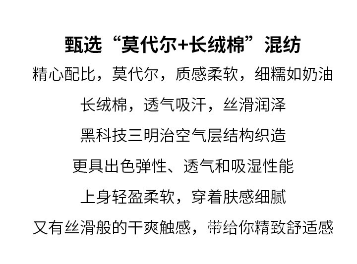 面料成分:23.5莫代尔+22棉+48.4聚酯纤维+6.1氨纶!