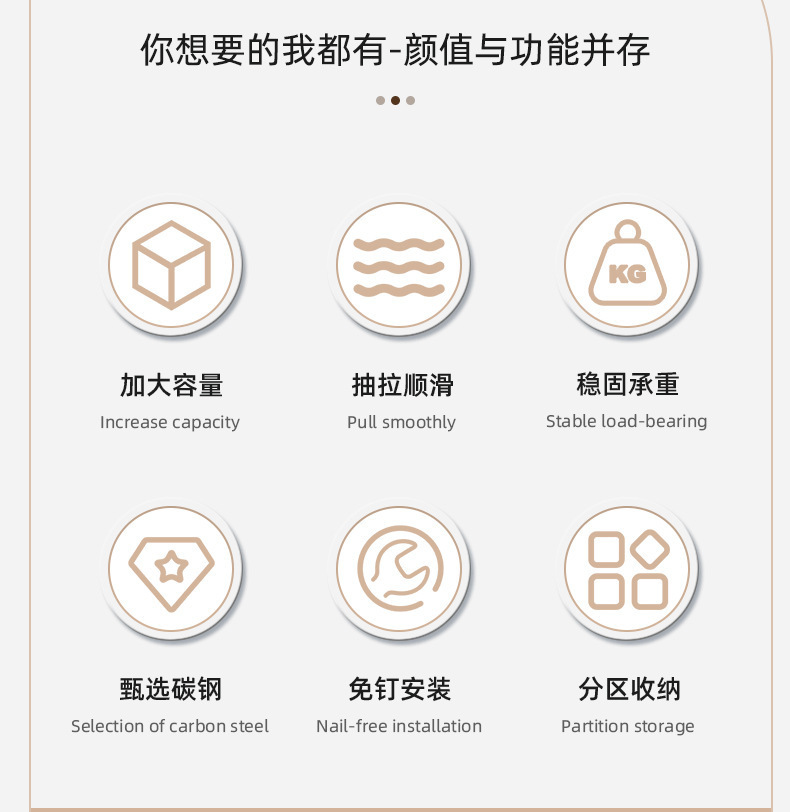 • (폭 35 - 깊이 48) 밀크 화이트 가죽 손잡이가 있는 인출식 상자 [슬라이드 레일 포함]