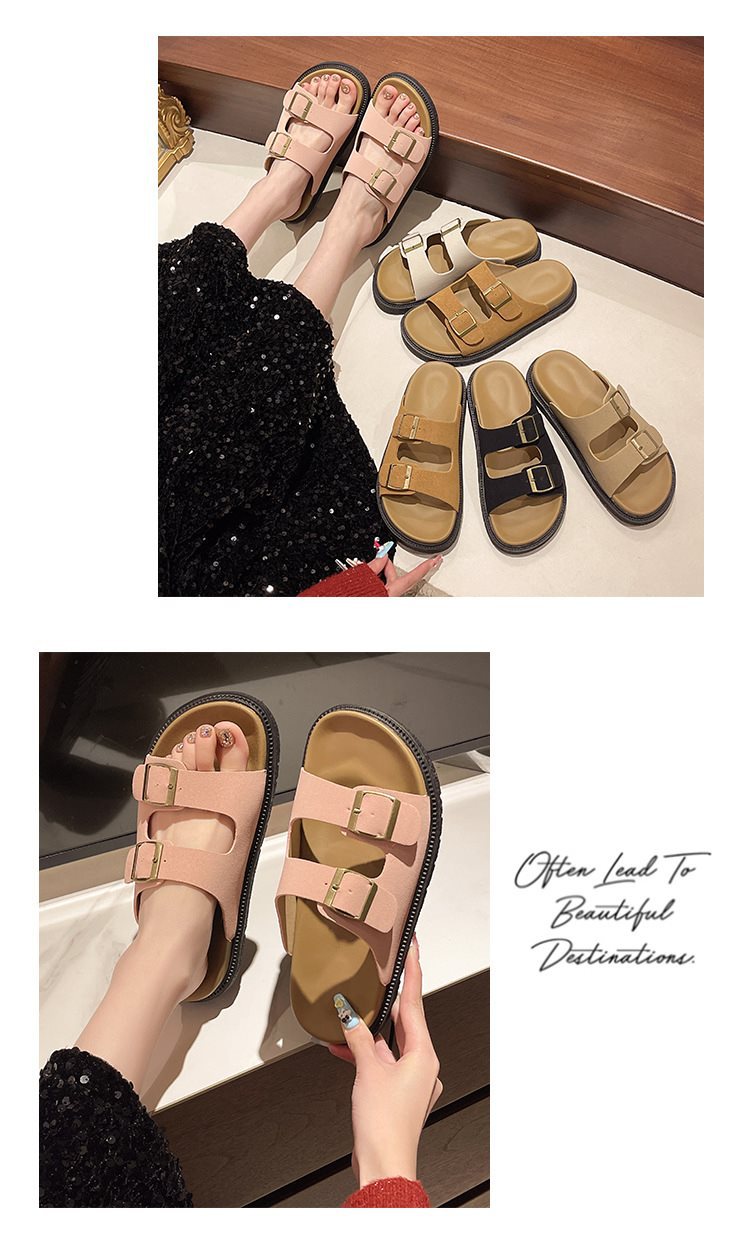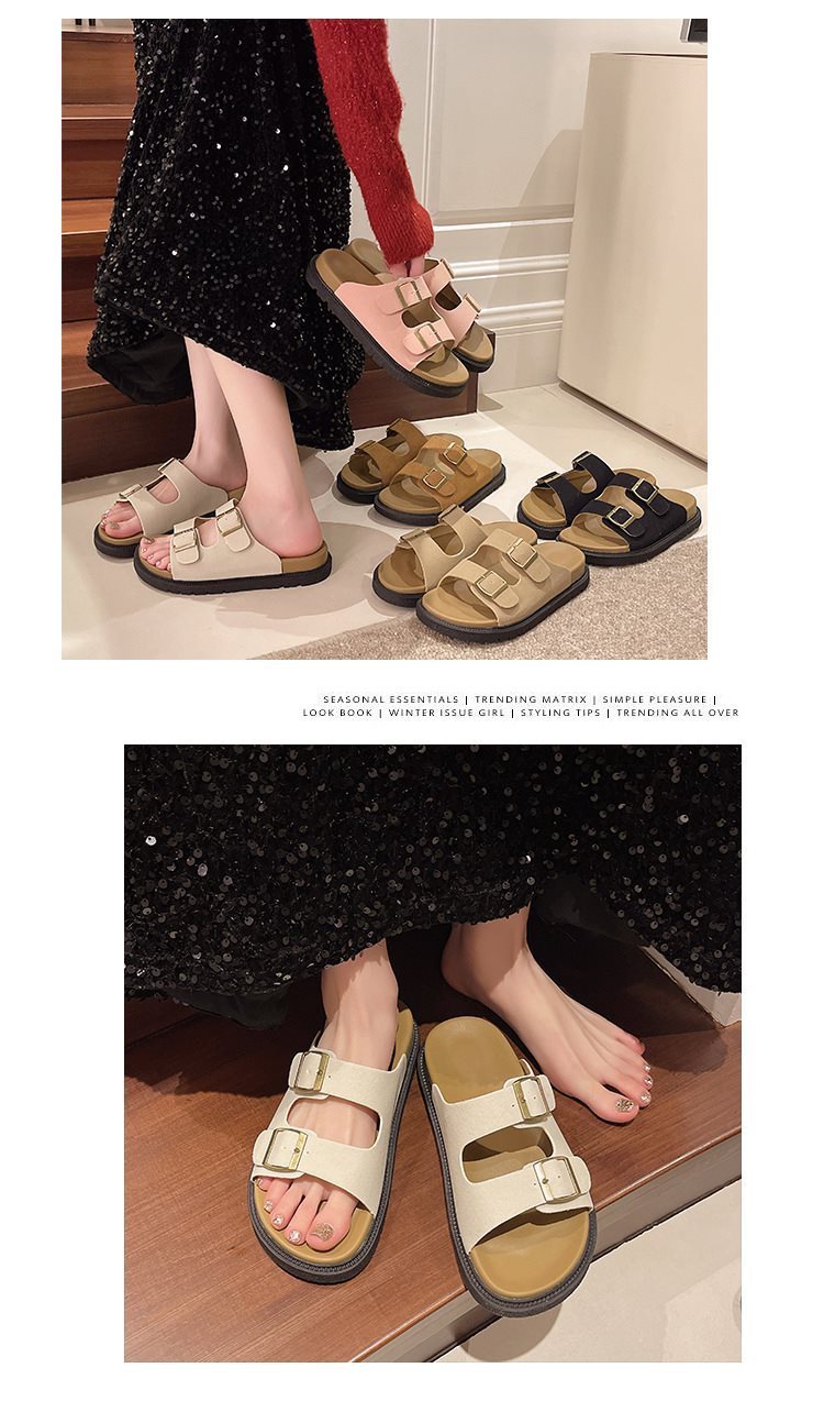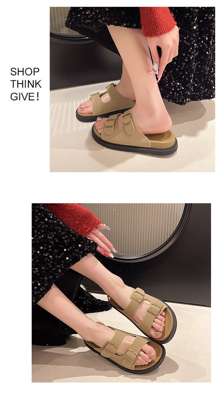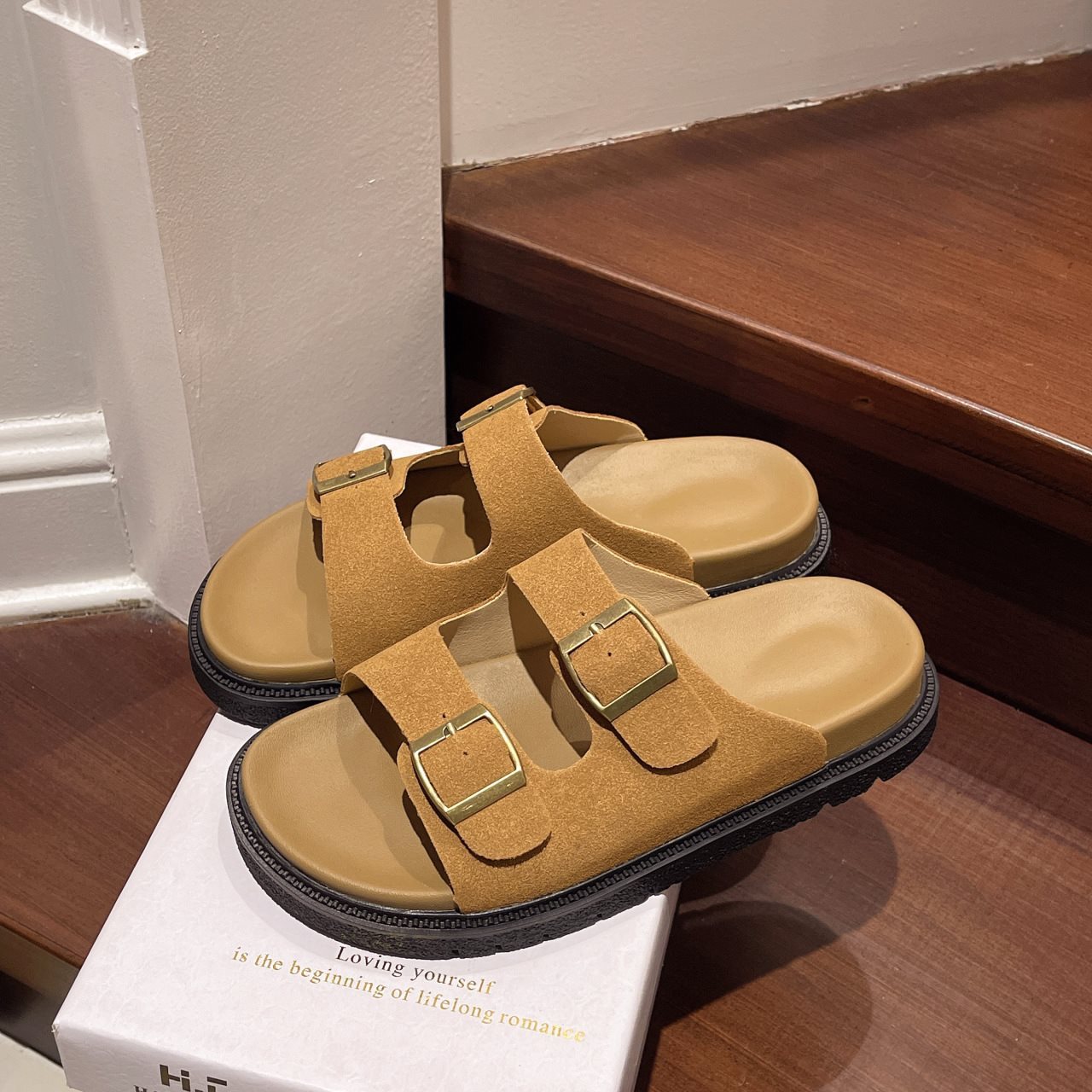 두꺼운 밑창 플랫 샌들 캐주얼 슬라이드 2025 새로운 빈티지 Birkenstocks 신발 봄 및 여름 샌들 및 슬리퍼 여성용 외부 착용