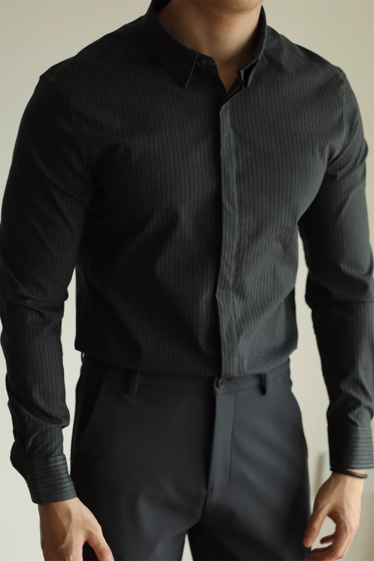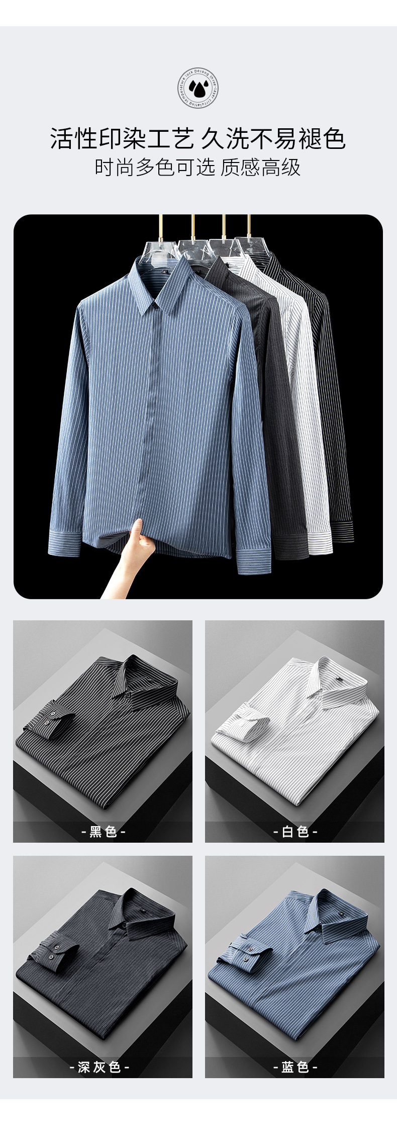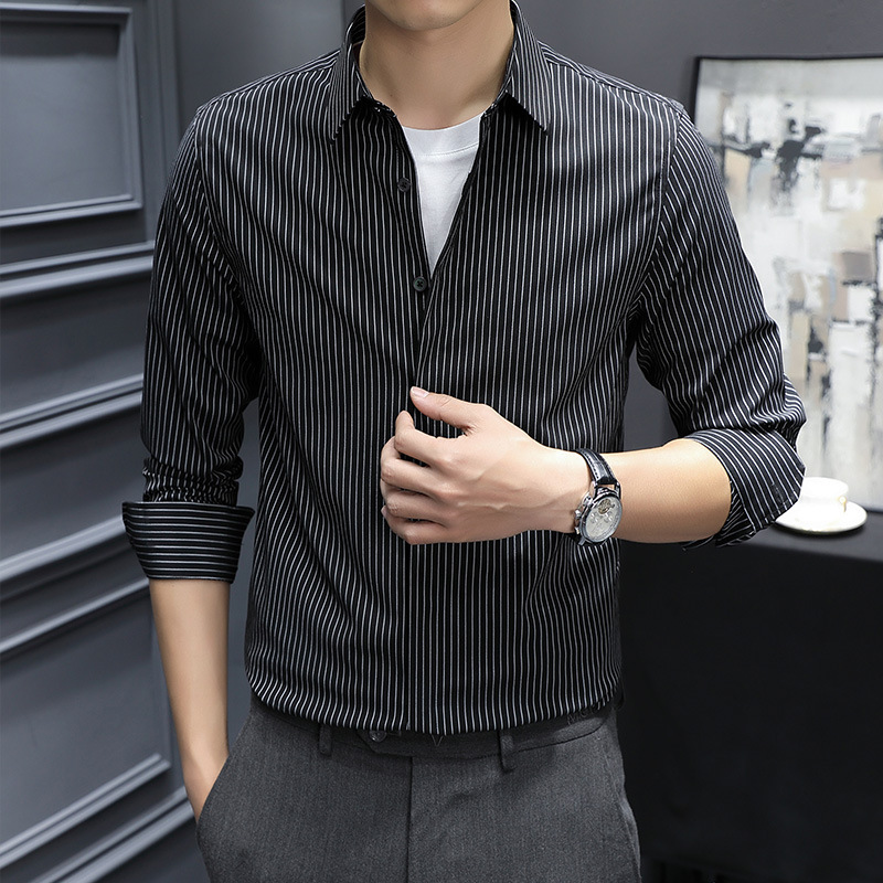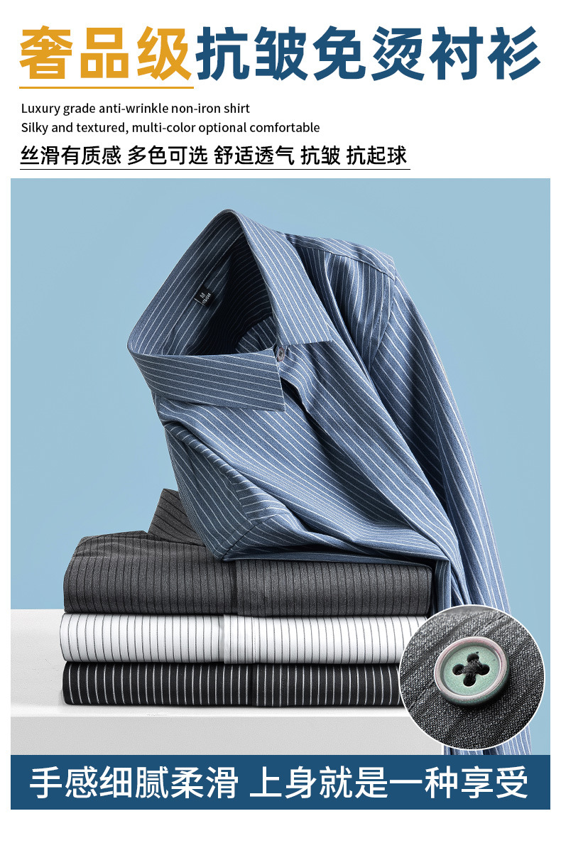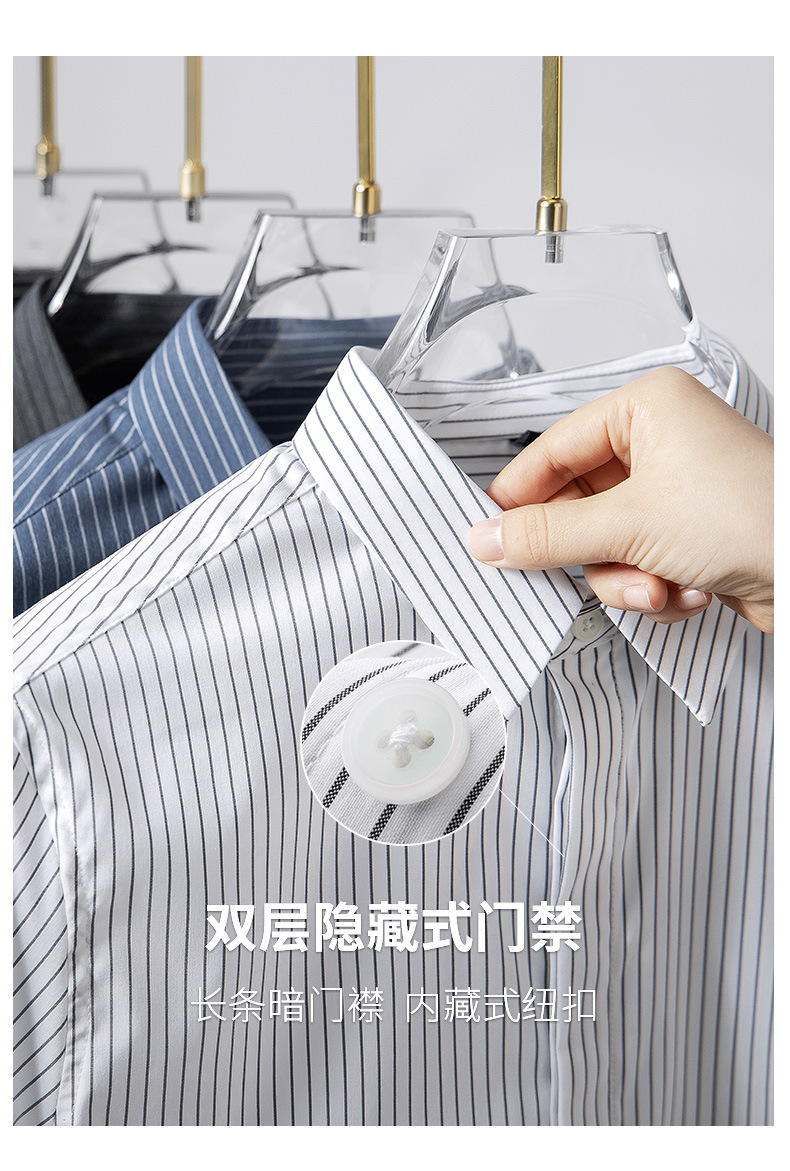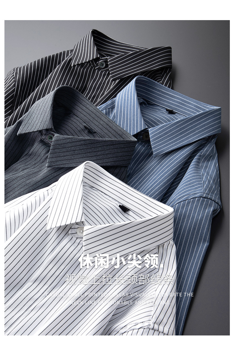 고급형 히든 플래킷 스트라이프 남성용 라이트 비즈니스 긴팔 셔츠 2026 봄/가을 신상품 다림질 필요 없는 주름 방지 캐주얼 셔츠스토어 가기