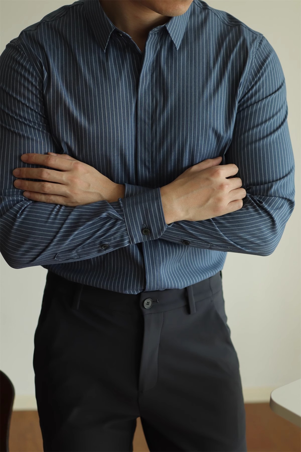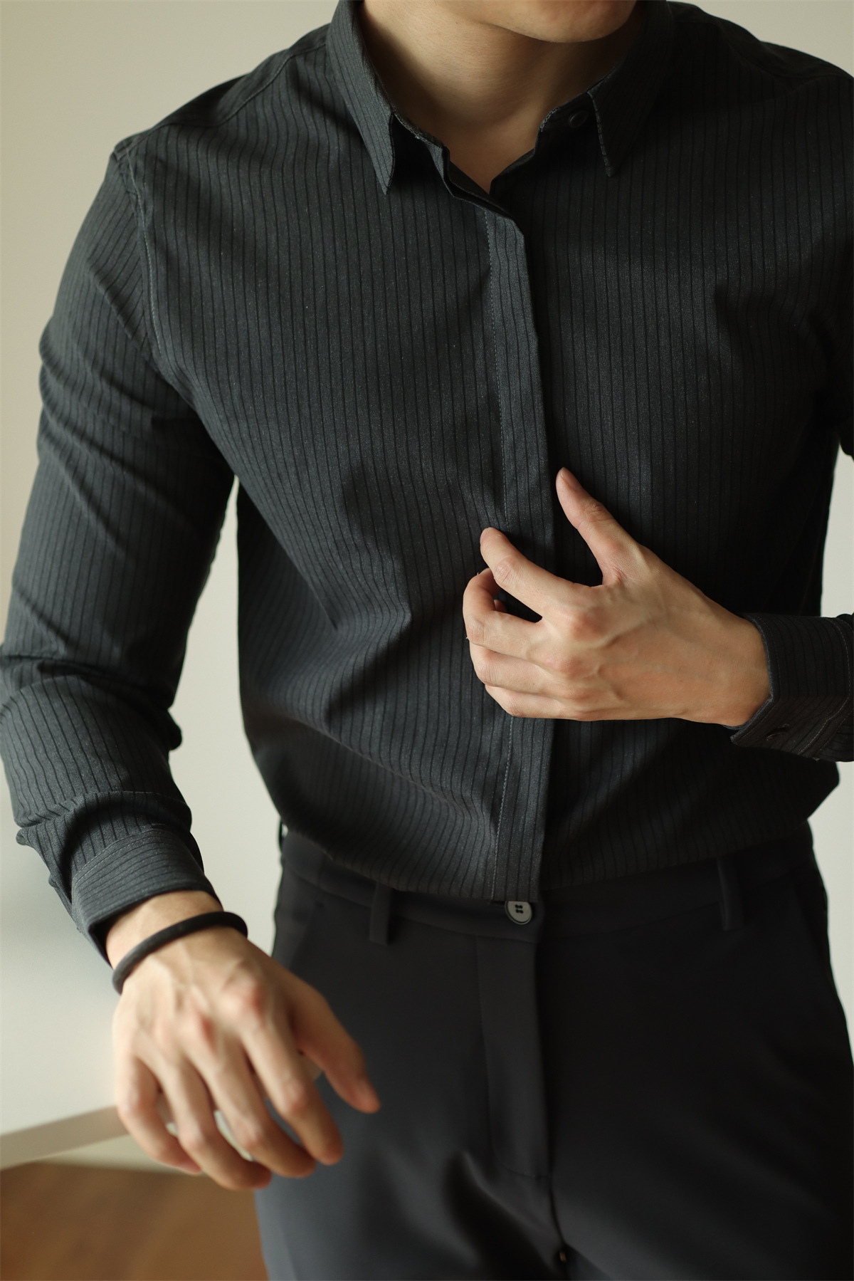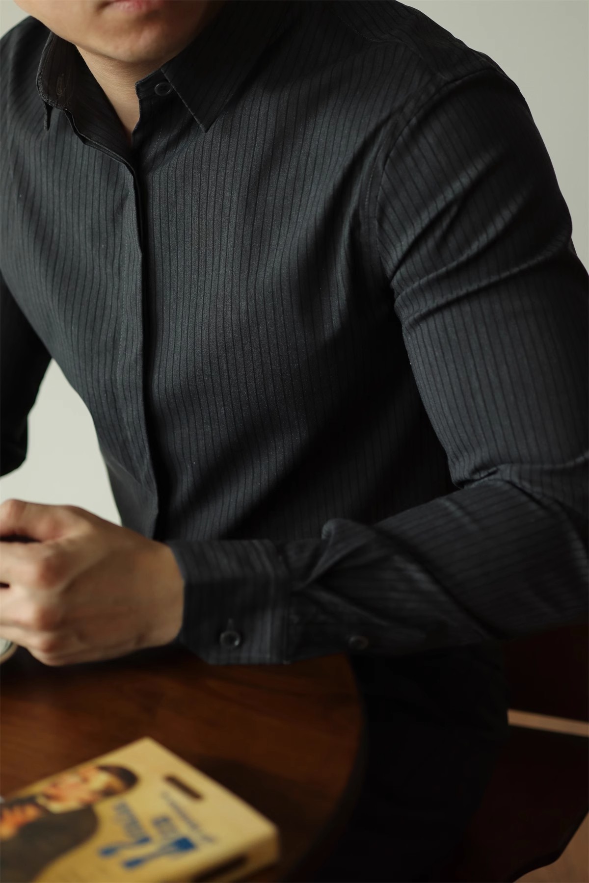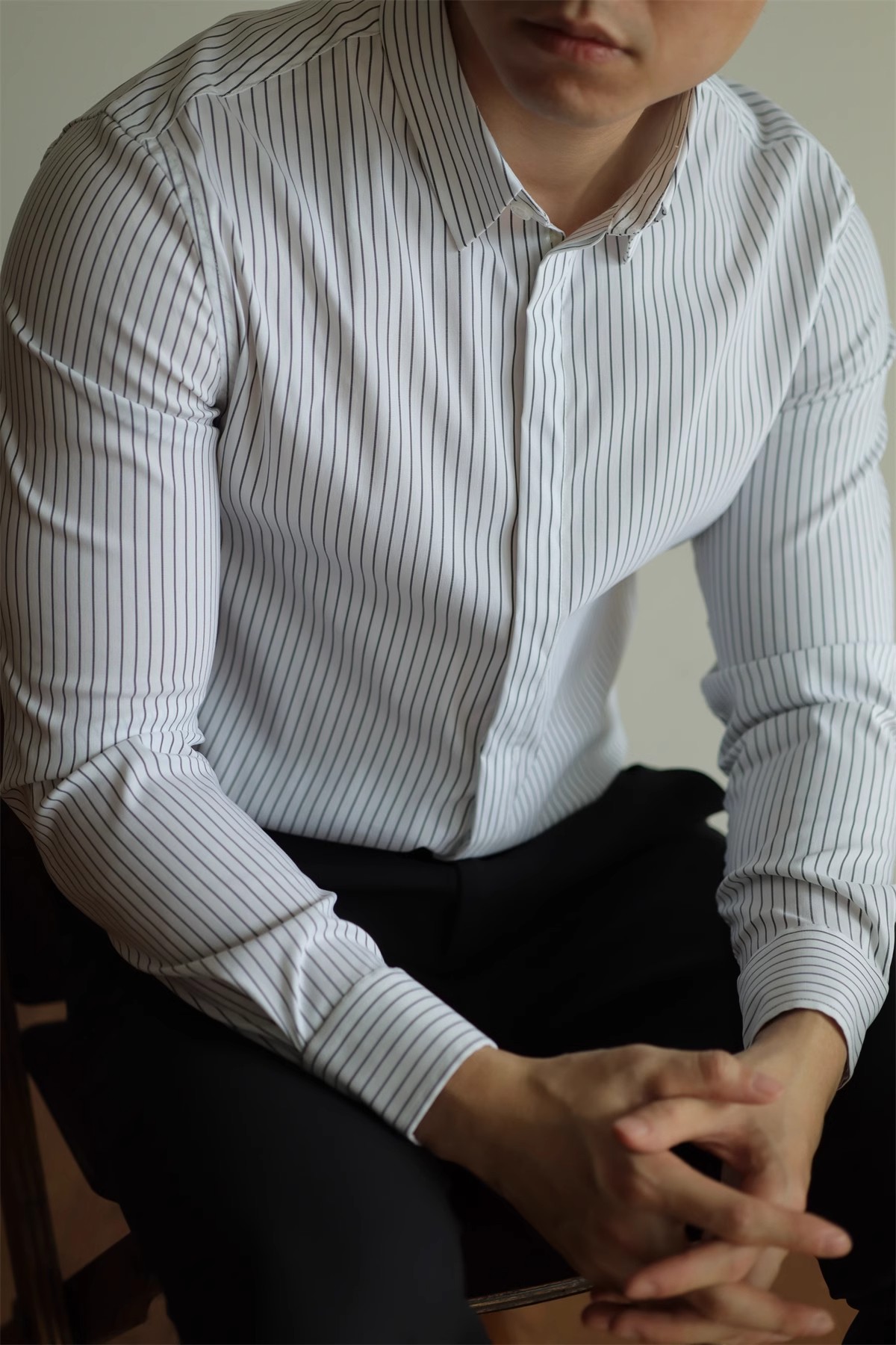 고급형 히든 플래킷 스트라이프 남성용 라이트 비즈니스 긴팔 셔츠 2026 봄/가을 신상품 다림질 필요 없는 주름 방지 캐주얼 셔츠스토어 가기