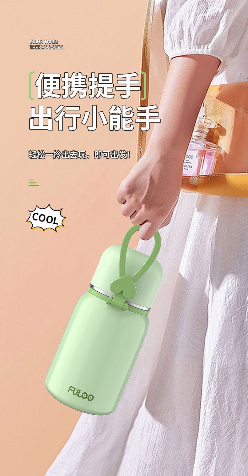 Fule 316 스테인레스 스틸 보온병 컵 창조적 인 귀여운 포켓 컵 여성의 작은 휴대용 절묘한 간단한 드롭 방지 워터 컵스토어 가기