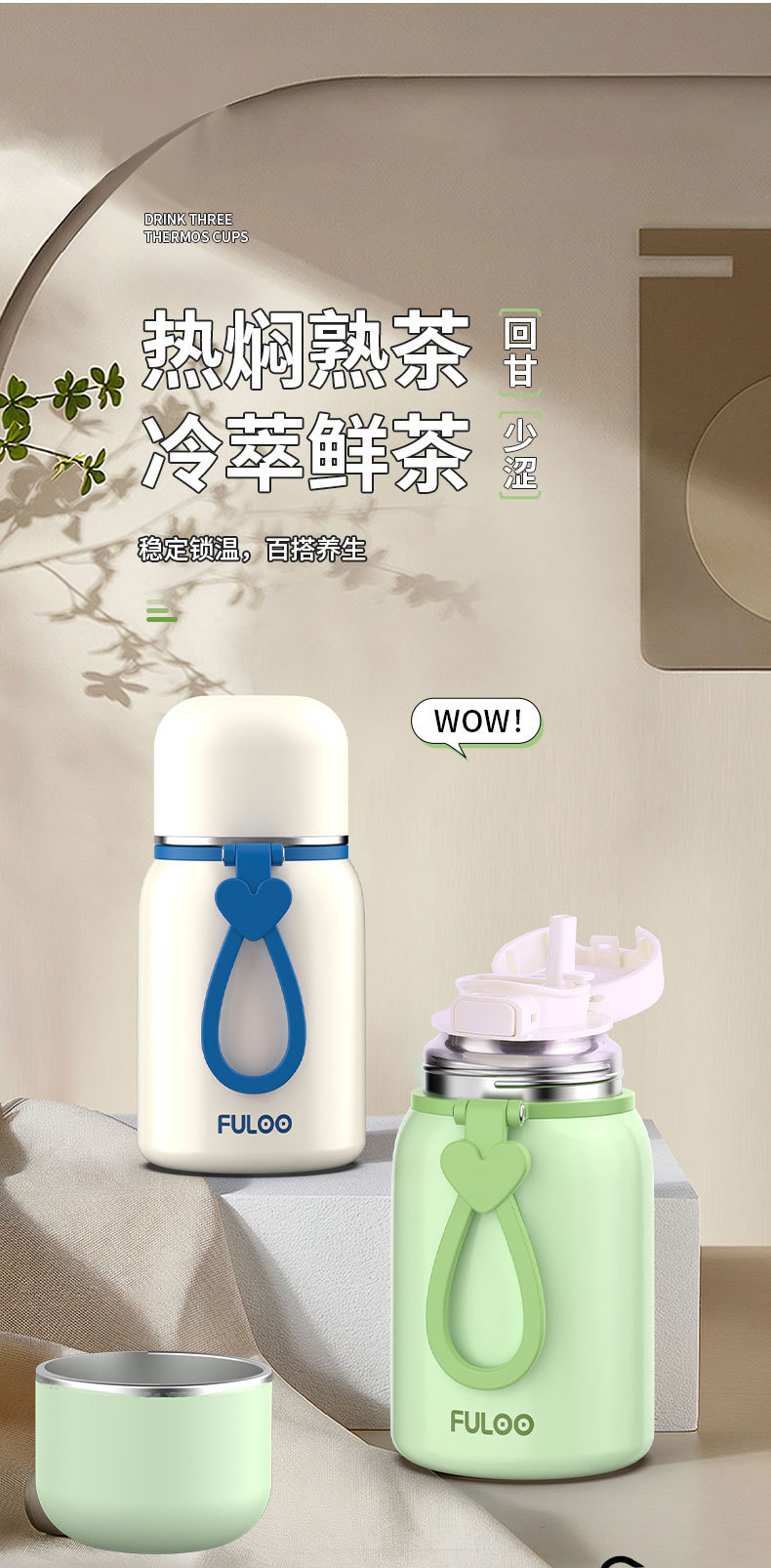Fule 316 스테인레스 스틸 보온병 컵 창조적 인 귀여운 포켓 컵 여성의 작은 휴대용 절묘한 간단한 드롭 방지 워터 컵