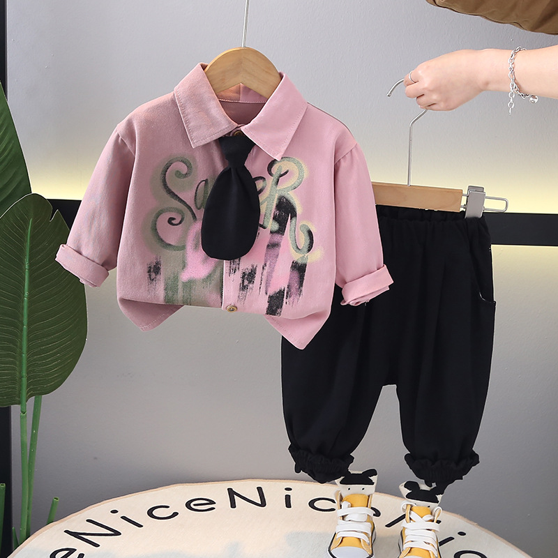 Yihao 아동복 아동복 봄과 가을 새로운 한국 스타일 캐주얼 셔츠 아동 봄과 가을 유행 소년 소녀 의류스토어 가기