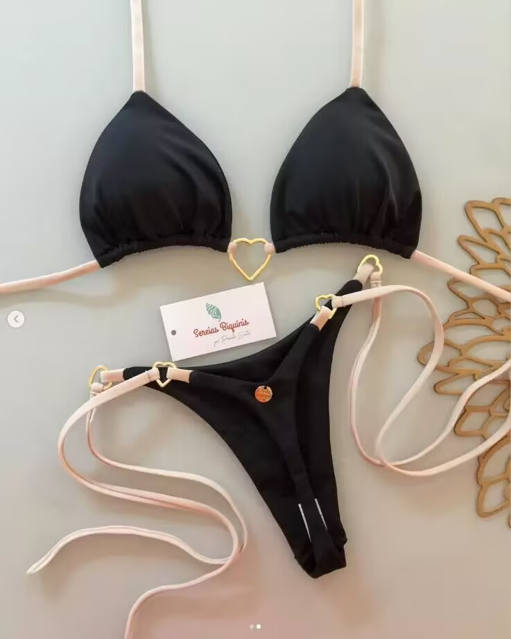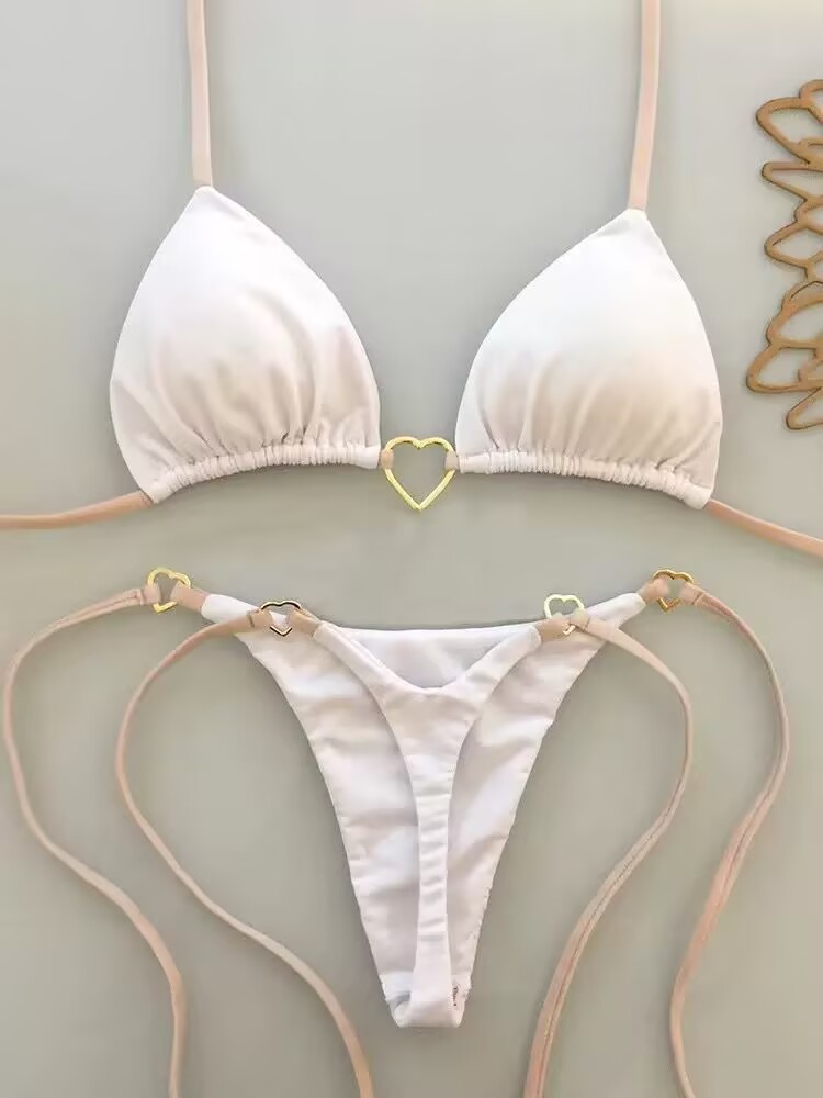 2025 새로운 유럽과 미국의 러브 넥, 비키니 브라질 섹시 메탈 버클 솔리드 컬러 분할 국경 수영복