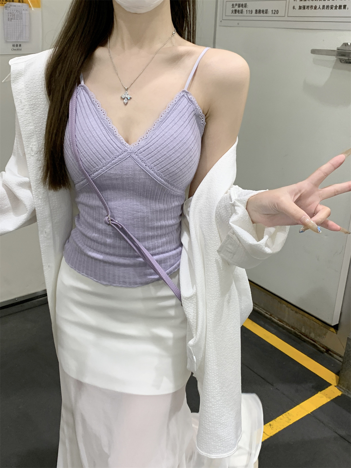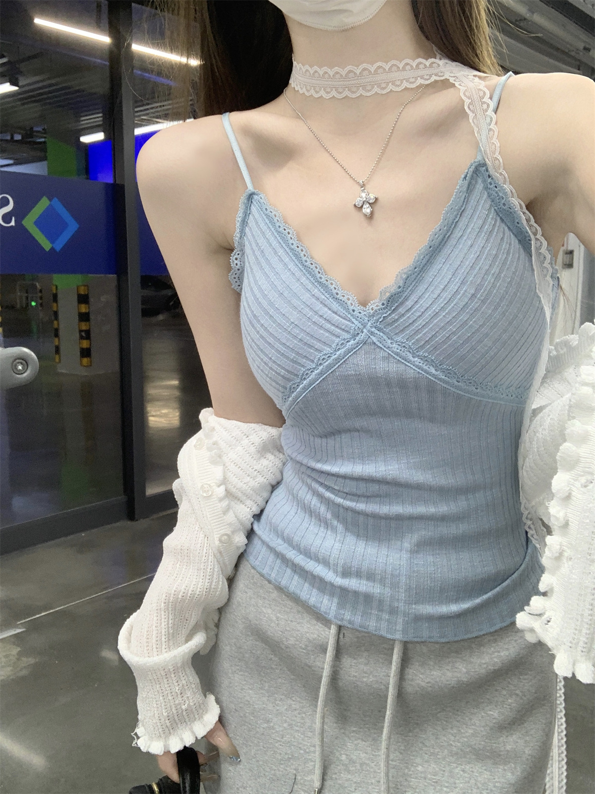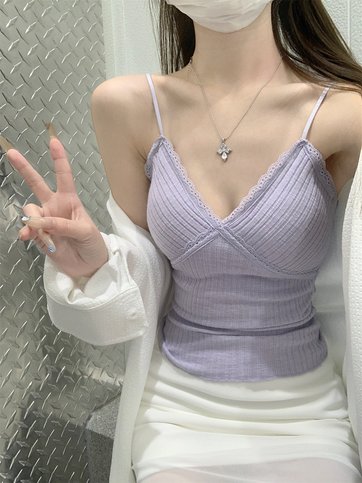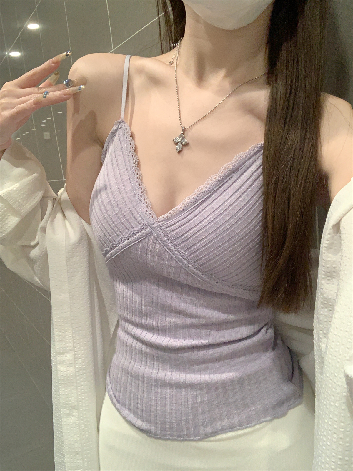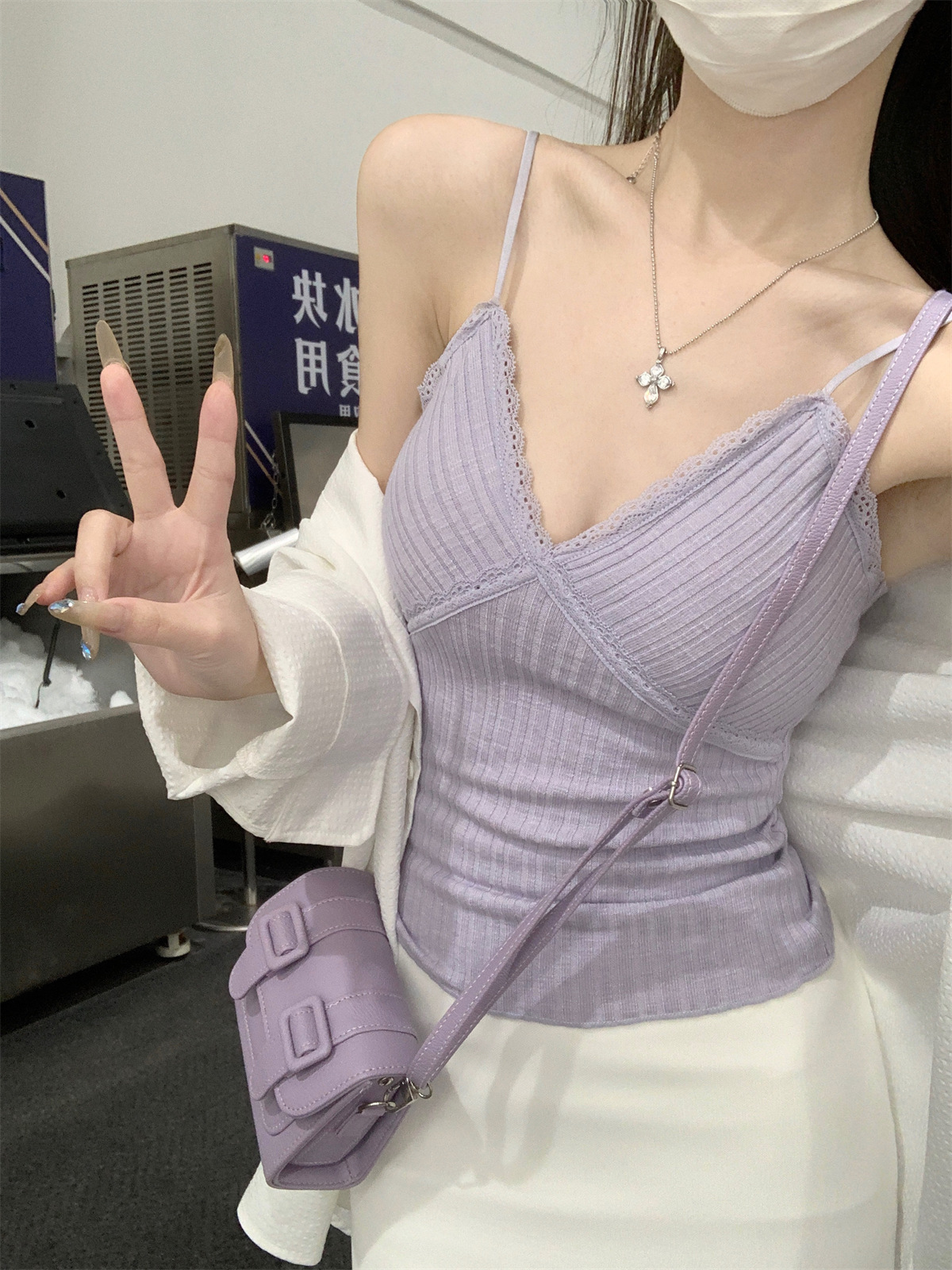 순수한 욕망 스타일 V 넥 레이스, 가슴 패드 카미 솔 여성 여름 새로운 슬림 핏 짧은 민소매 내부 탑스토어 가기