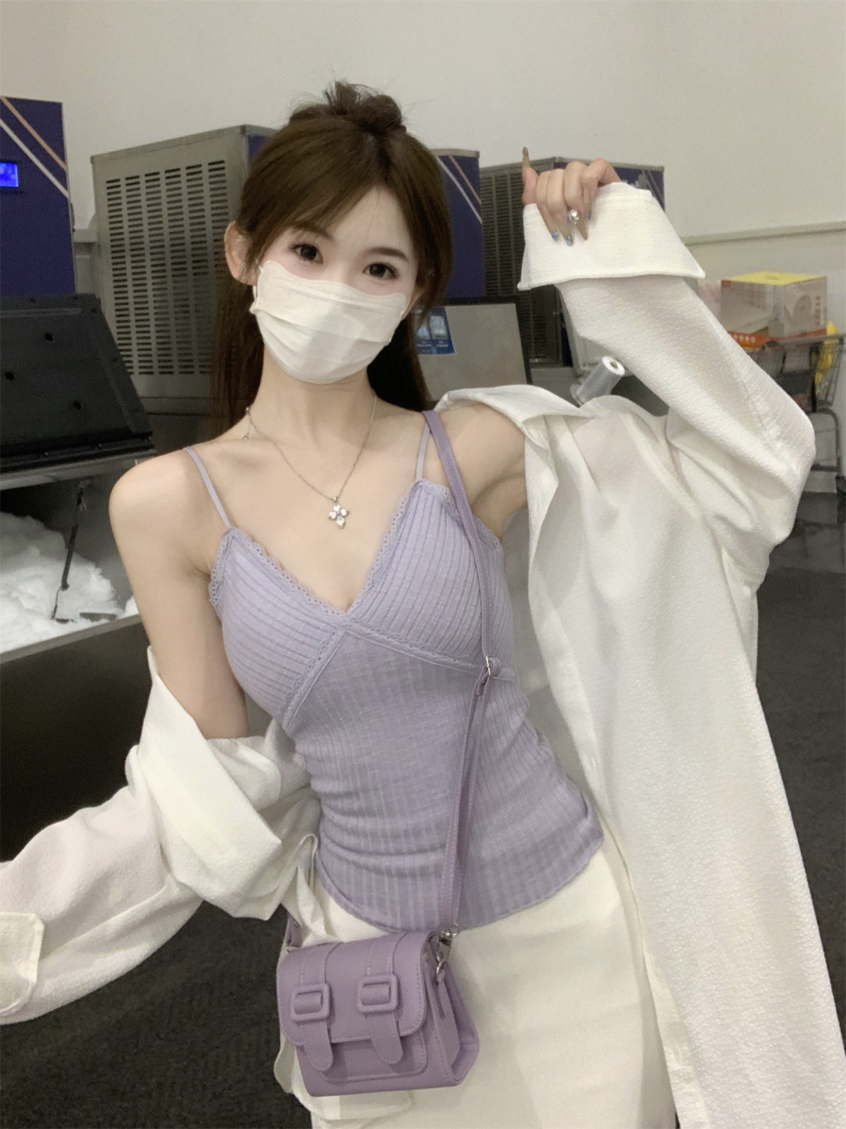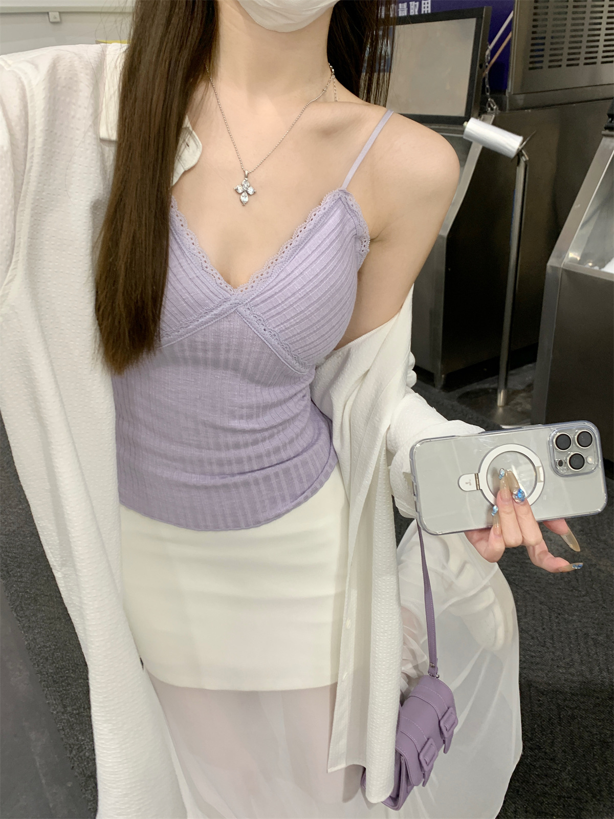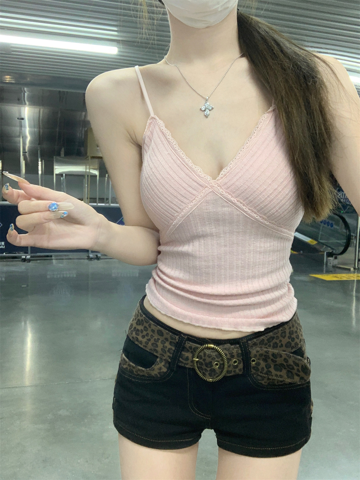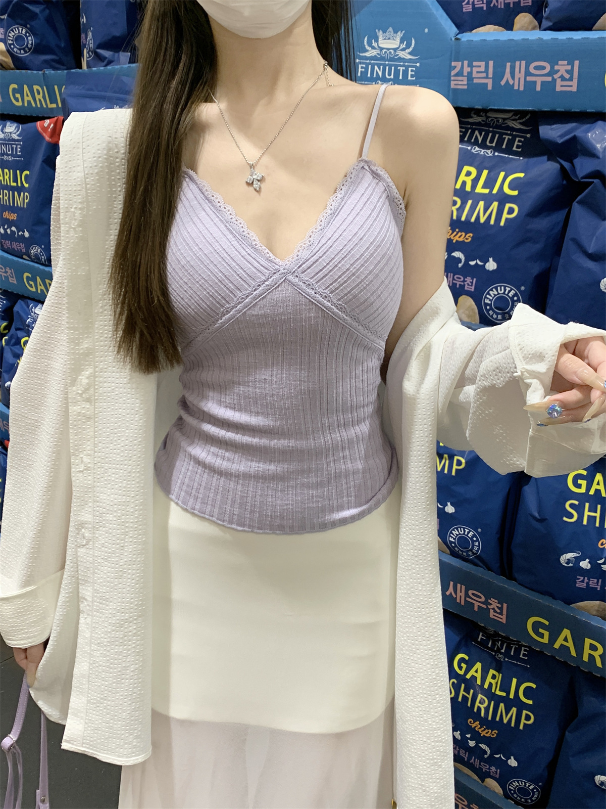 순수한 욕망 스타일 V 넥 레이스, 가슴 패드 카미 솔 여성 여름 새로운 슬림 핏 짧은 민소매 내부 탑스토어 가기