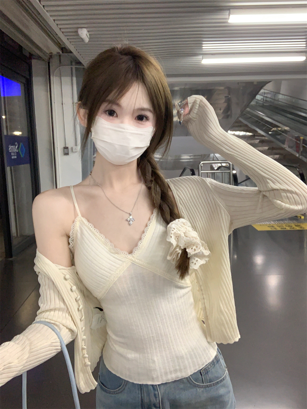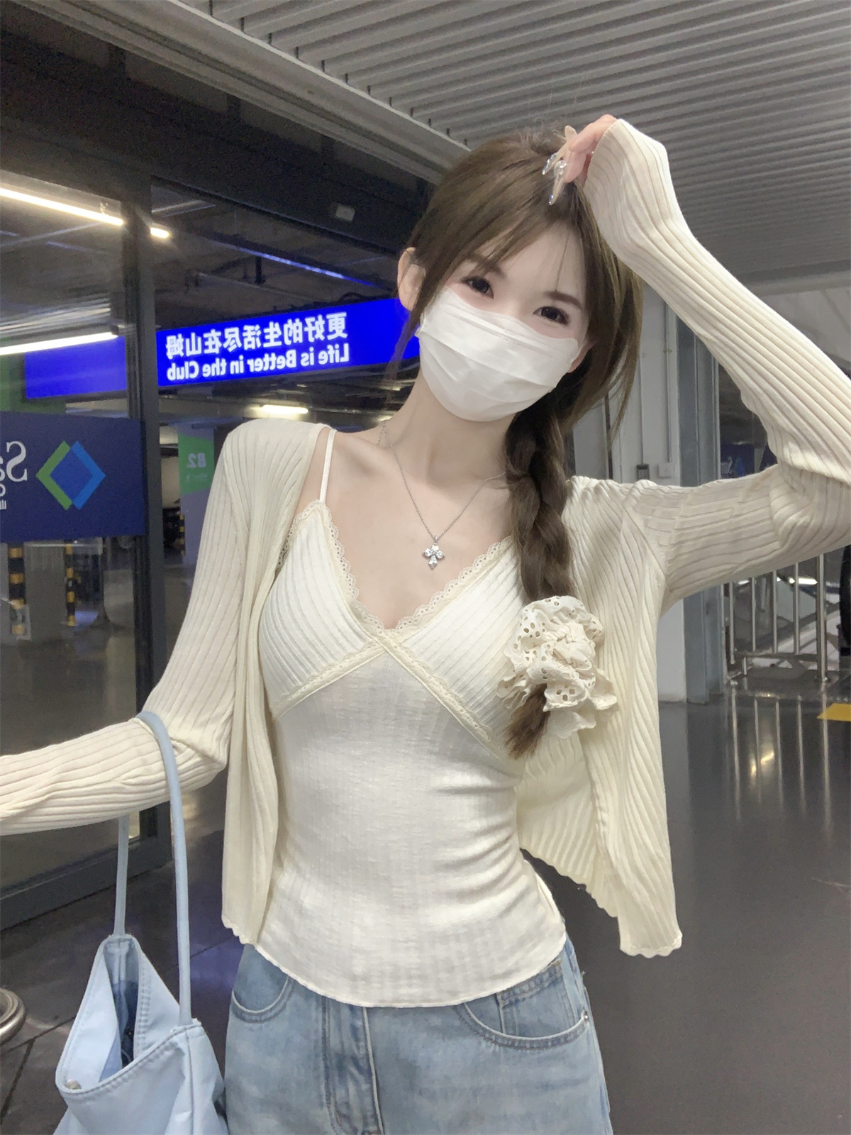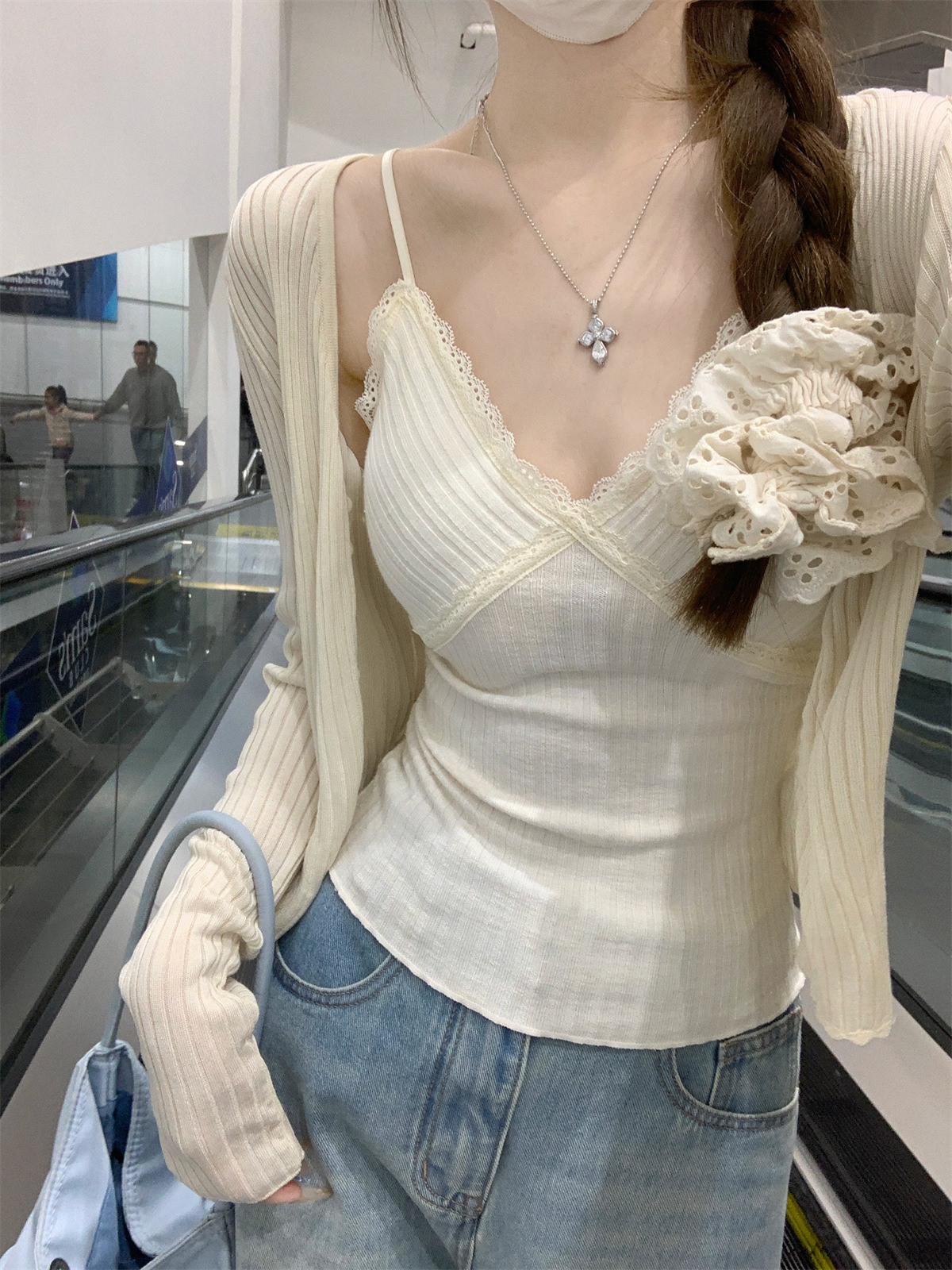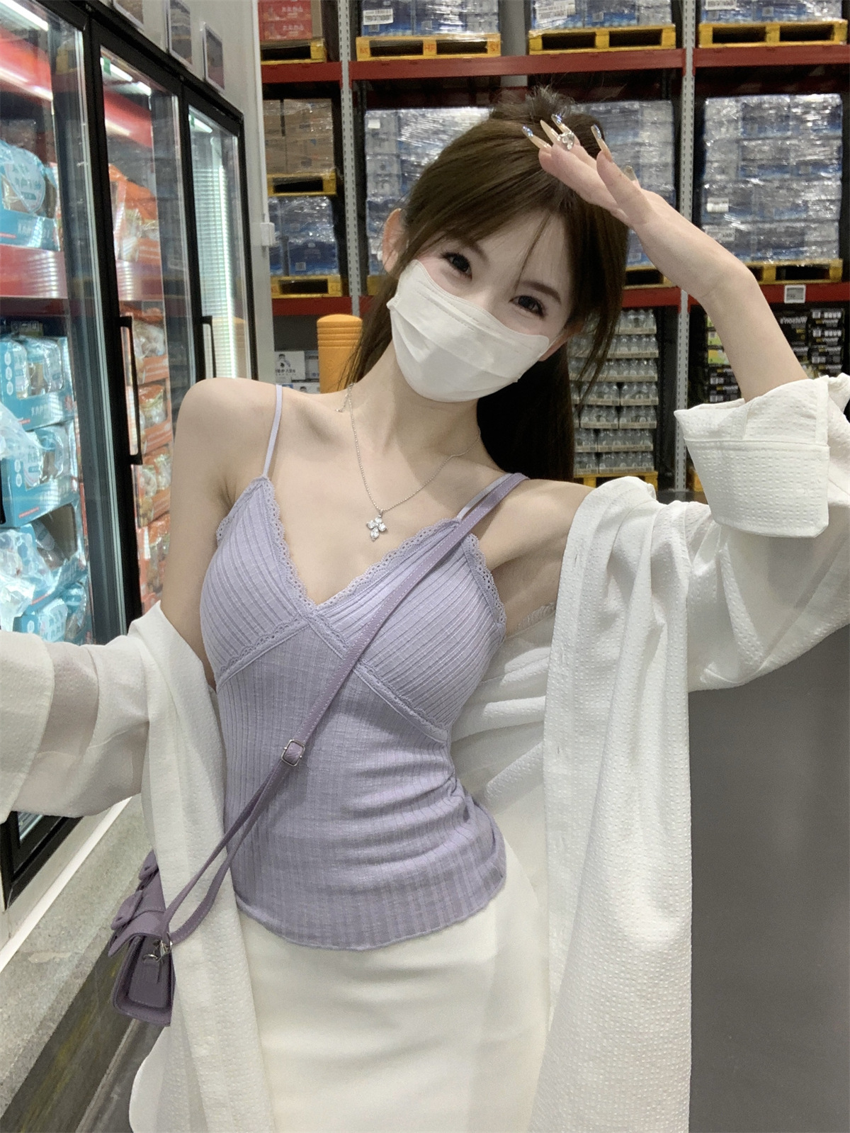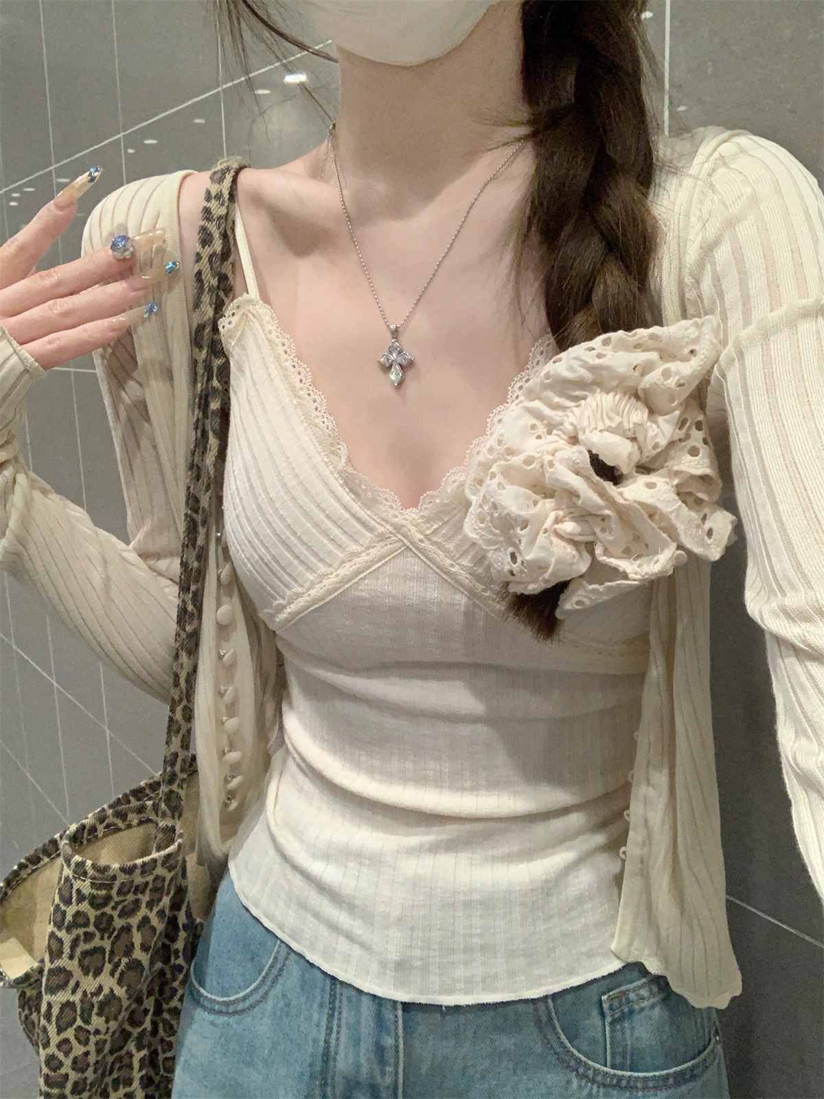 순수한 욕망 스타일 V 넥 레이스, 가슴 패드 카미 솔 여성 여름 새로운 슬림 핏 짧은 민소매 내부 탑스토어 가기