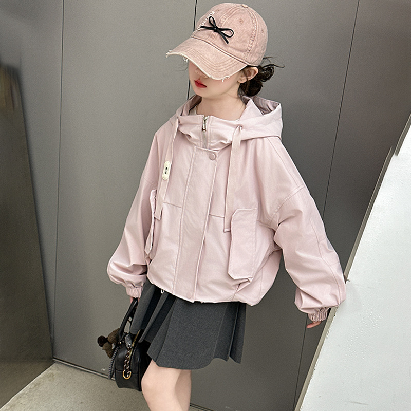 소녀 자켓 봄 2025 새로운 어린이 서양식 한국 후드 러셔 달콤한 봄과 가을 재킷 탑