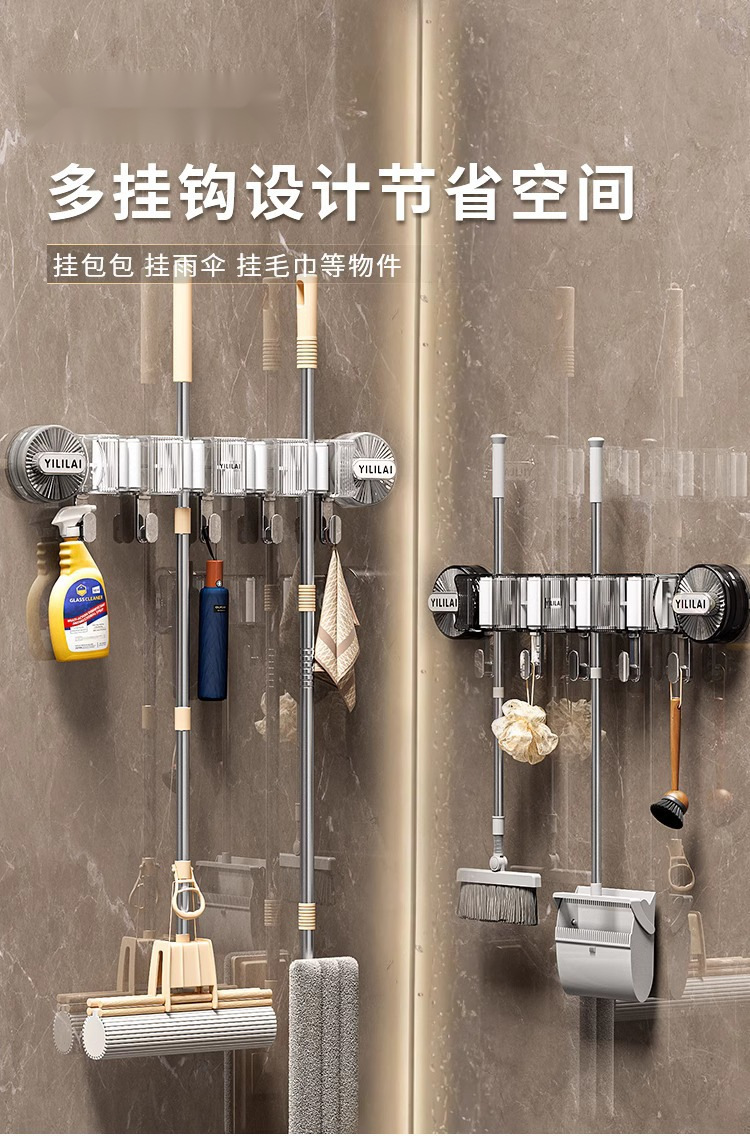 걸레 후크 저장 랙 빗자루 클립 고정 강한 접착 펀치 없는 화장실 걸레 벽 교수형
