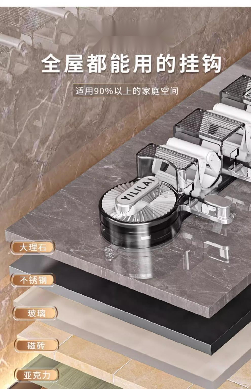 • ◐흡착컵 모델, 클립 4개, 후크 5개, 투명 회색 모델