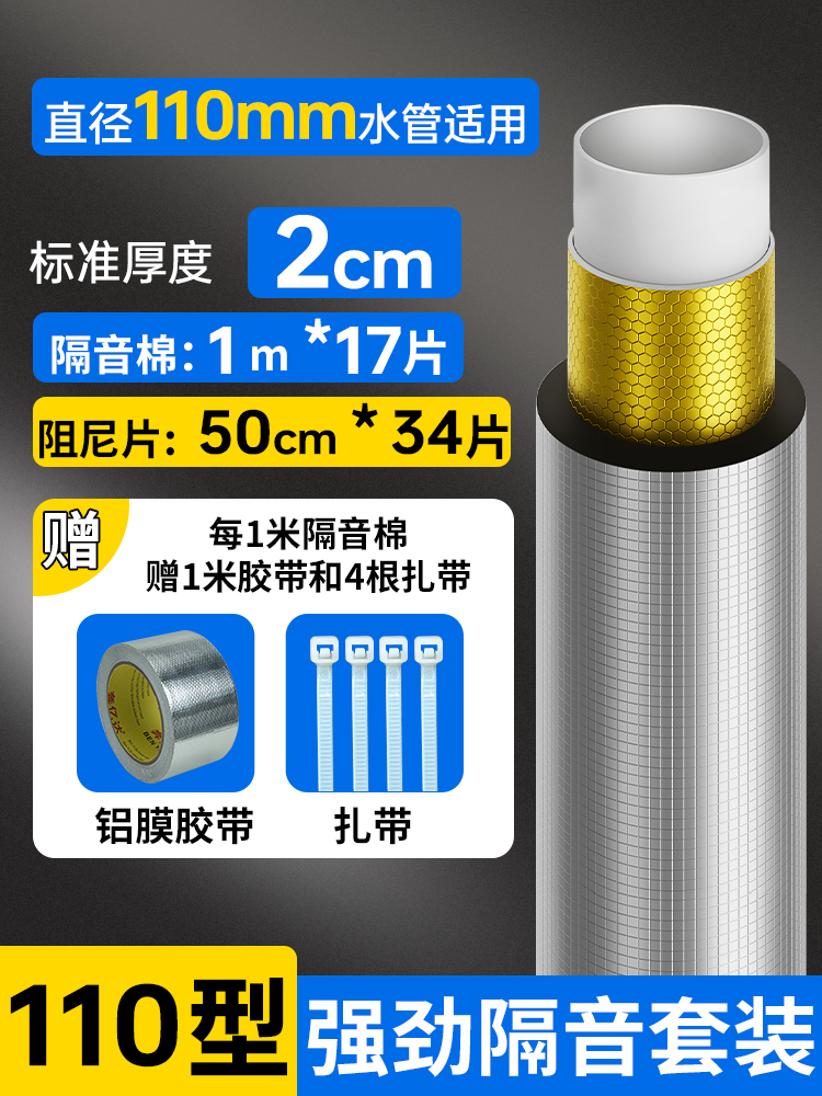• [독일 브랜드 기술] 110형 2CM 두꺼워짐 [ 3m ] 발코니 하수관 방음 패키지