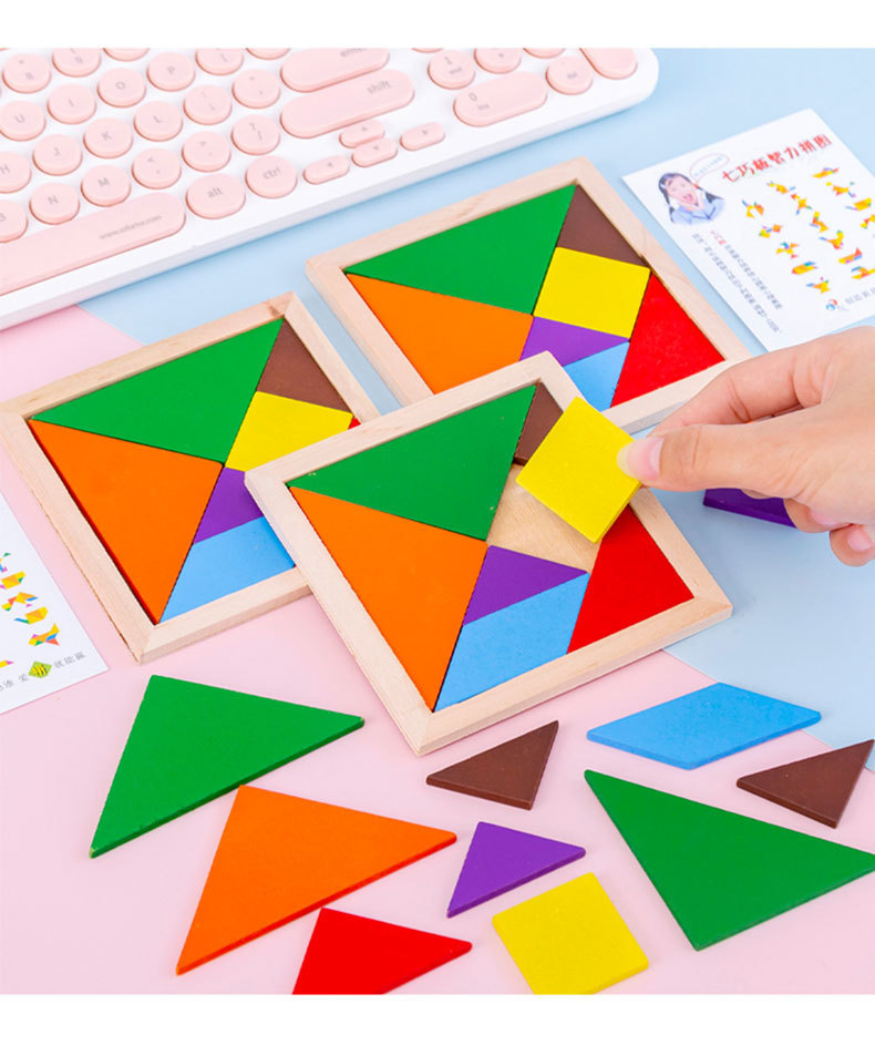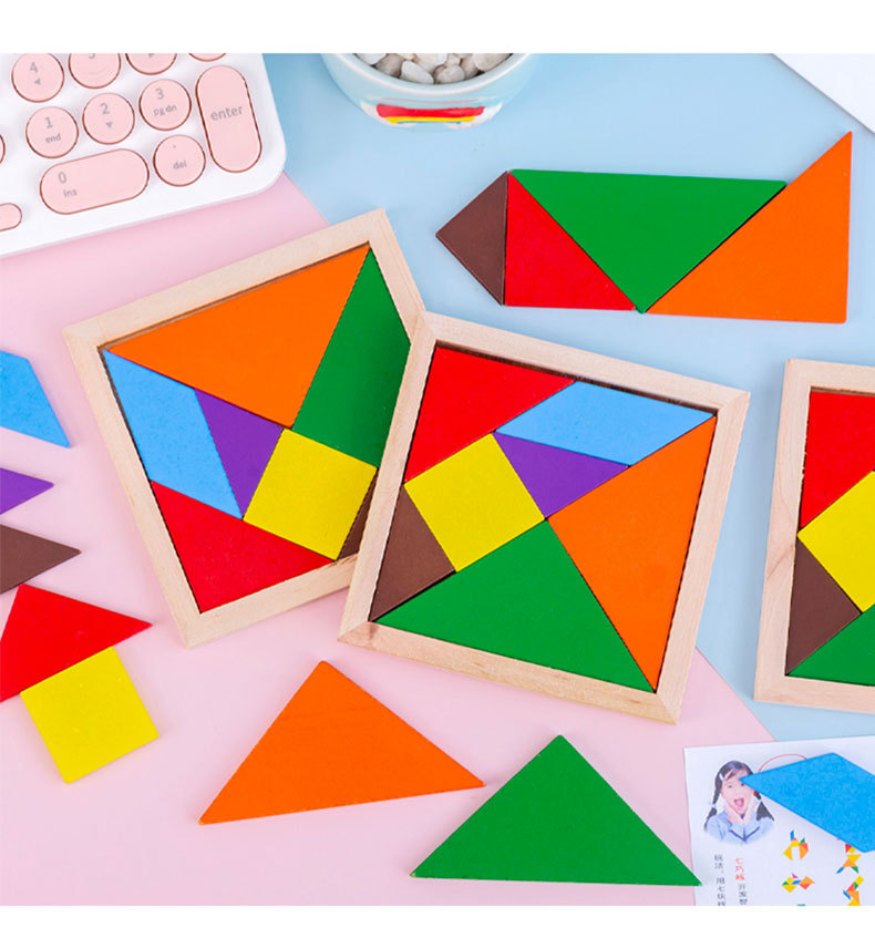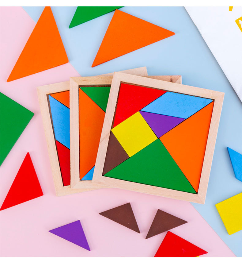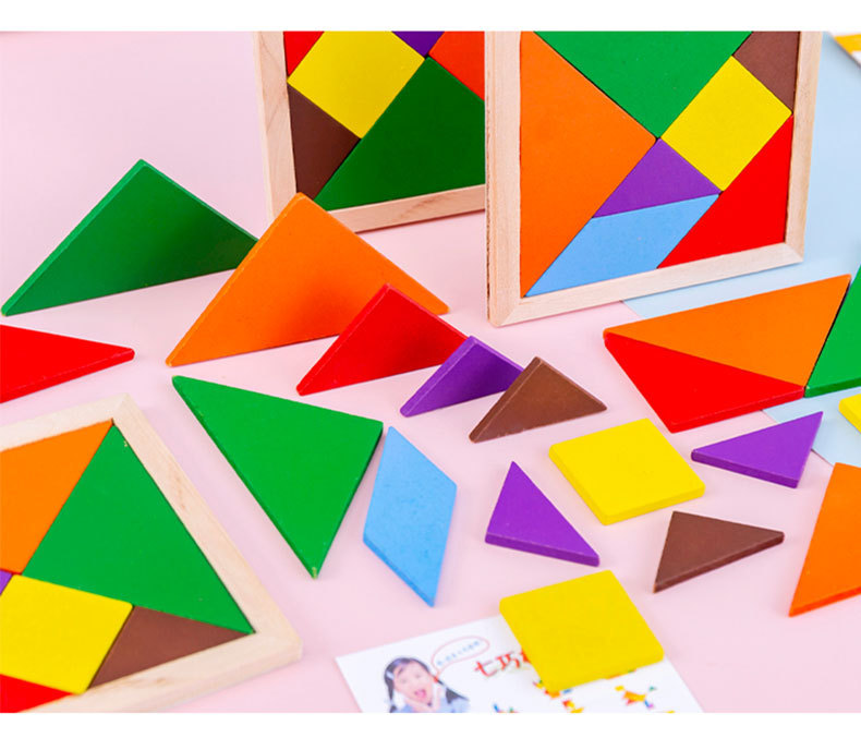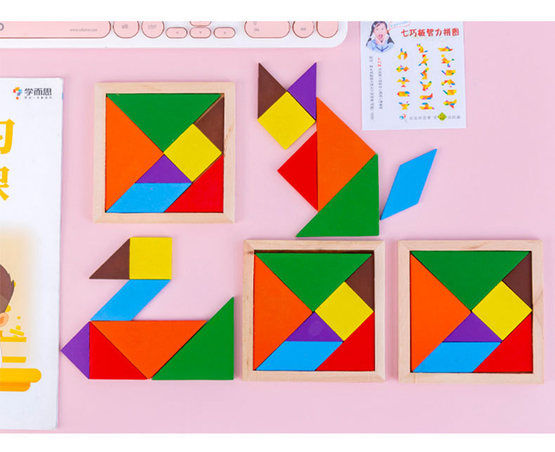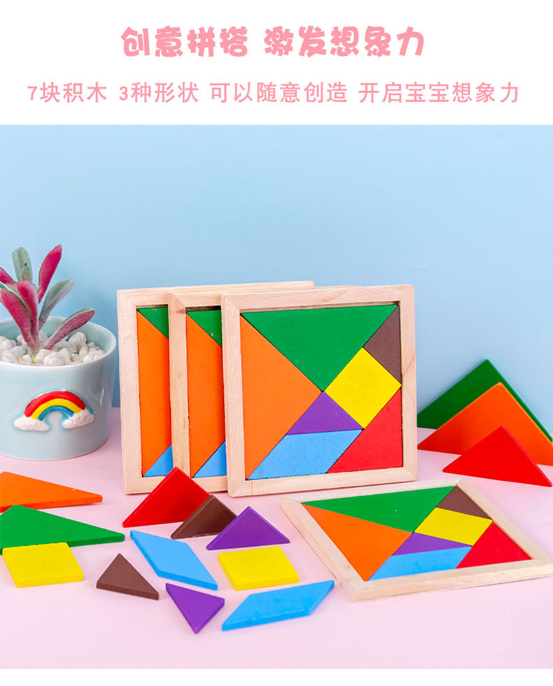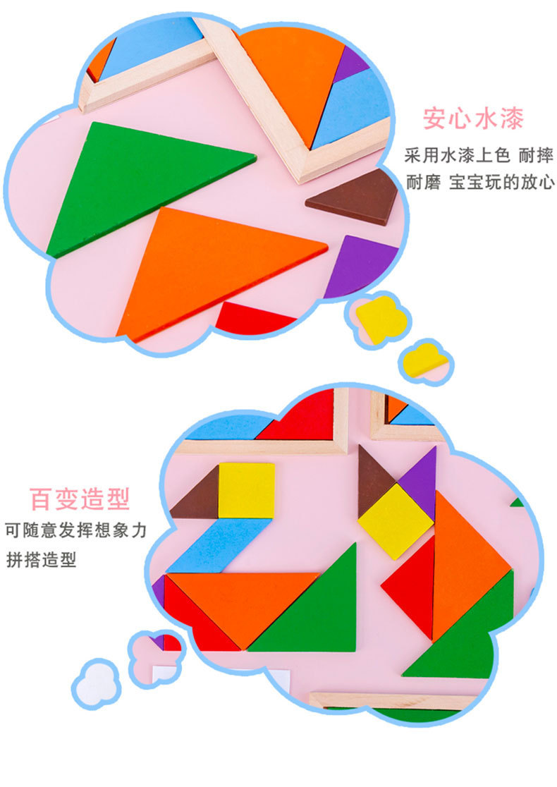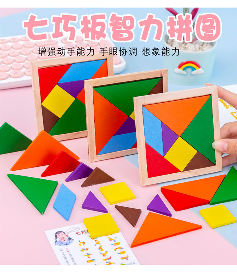어린이용 나무 칠교형 퍼즐 장난감 유치원 지능 개발 교구 교육용 퍼즐 학생 선물스토어 가기