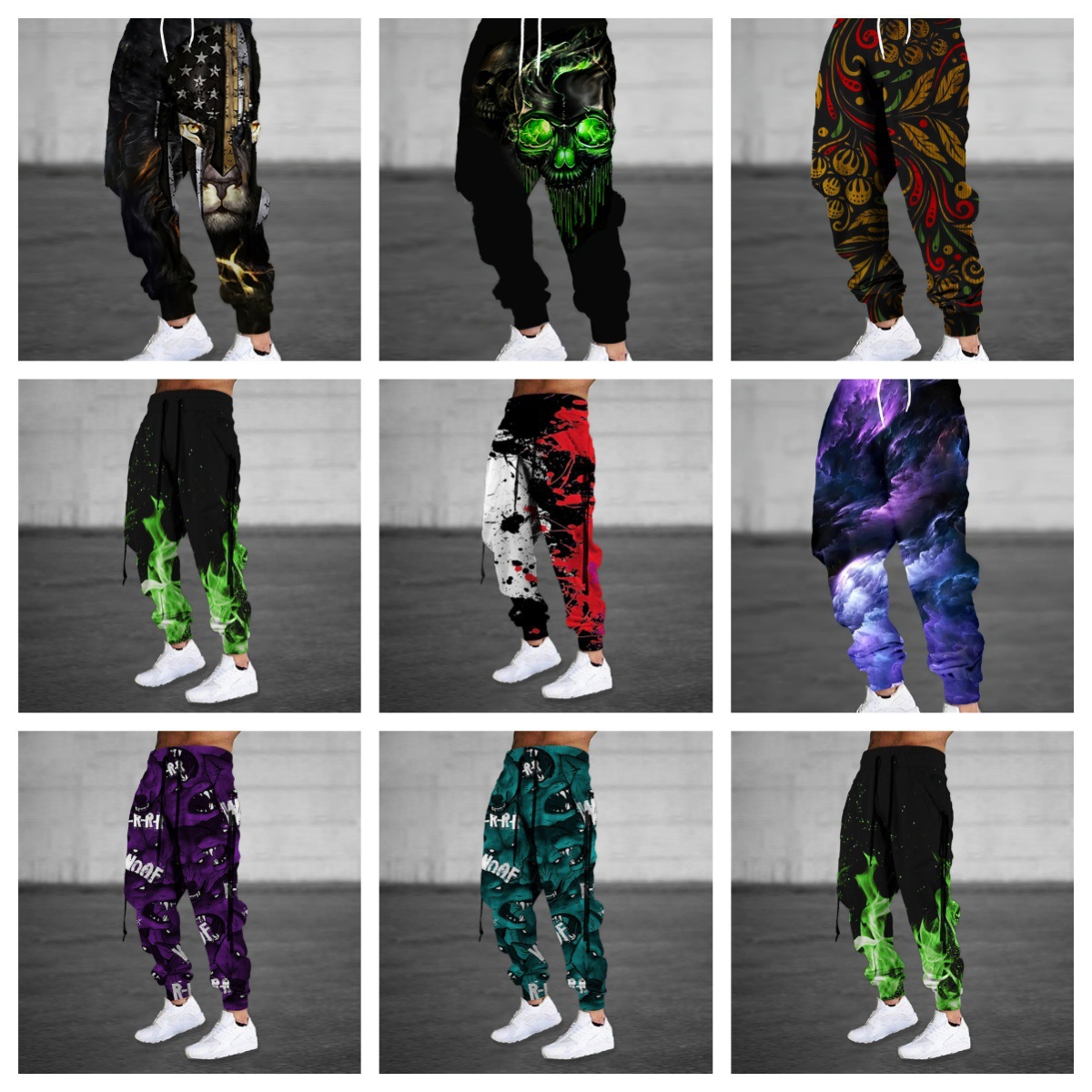 청소년 거리 매일 느슨한 할렌 바지 가을과 겨울 유럽과 미국의 국경 간 복고풍 3D 인쇄 스포츠 캐주얼 바지스토어 가기