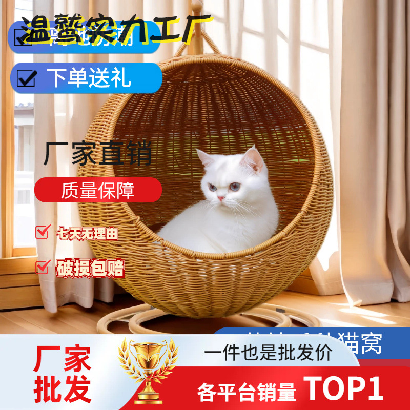 • 블랙 스윙 고양이 둥지 + 둥지 매트, 무료 세팍타크로 + 고양이 긁는 기둥