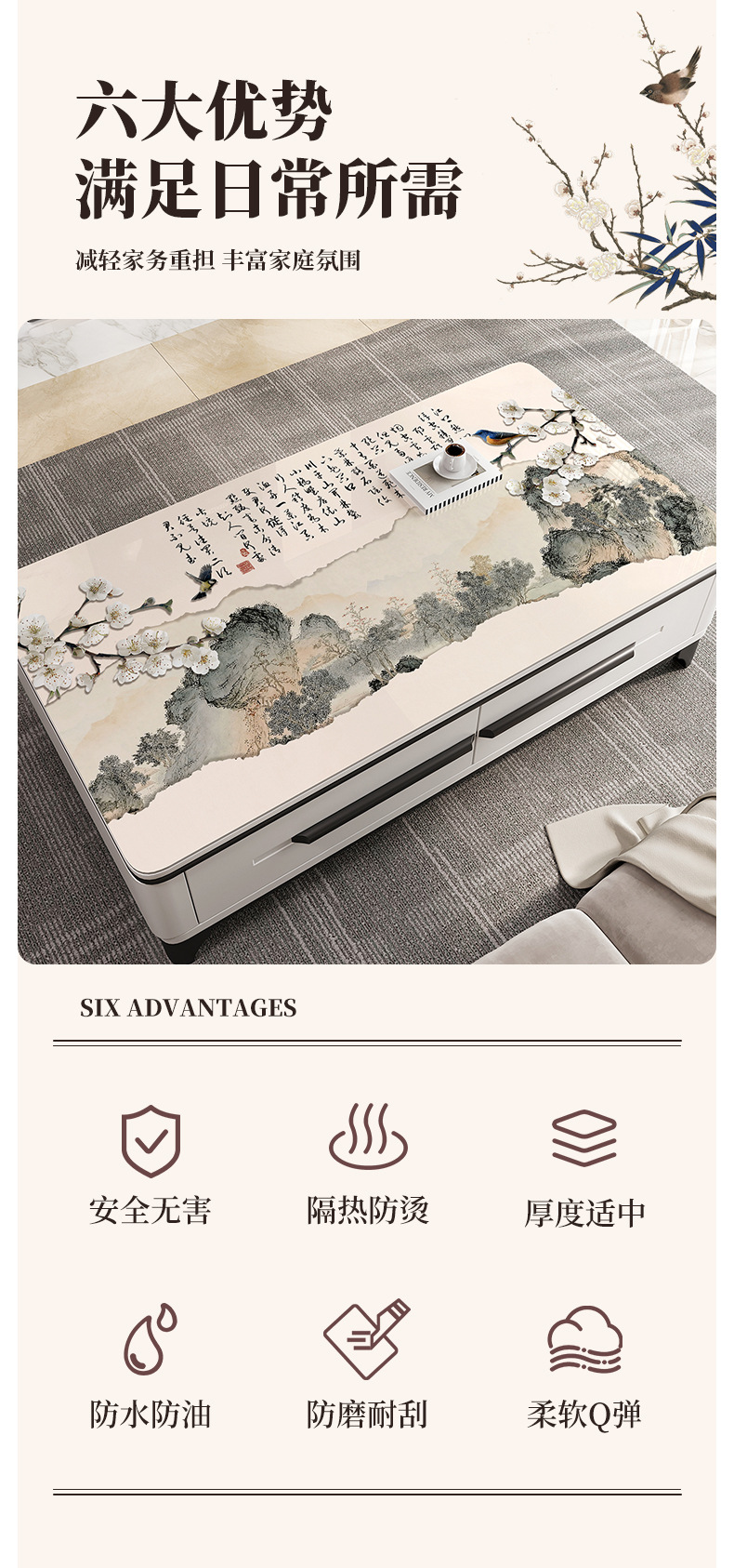 Guofeng 잉크 그림 커피 테이블 테이블 매트 빨 수 있는 방수 데스크탑 보호 매트 빛 고급 고급 거실 커피 테이블 테이블 테이블 테이블 천