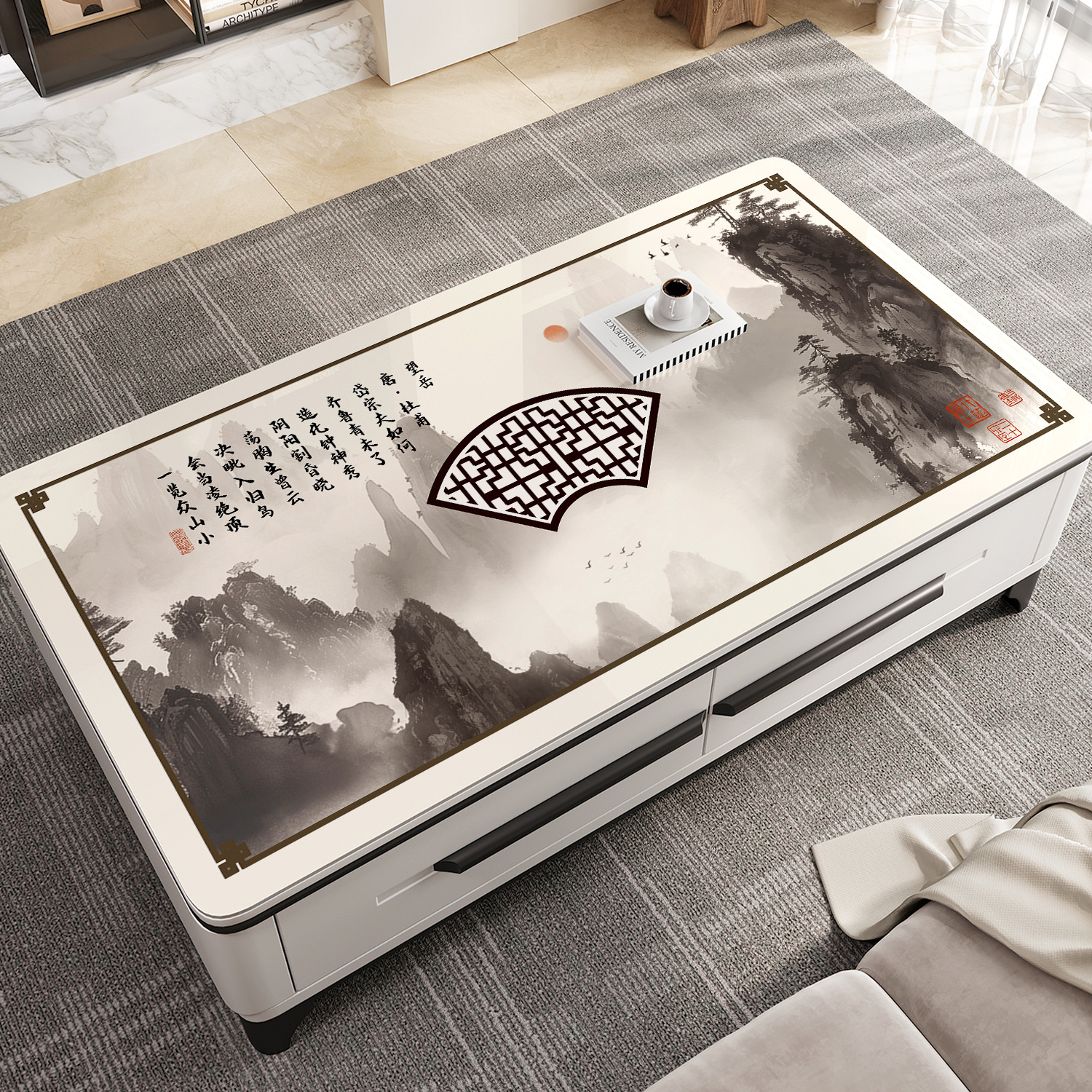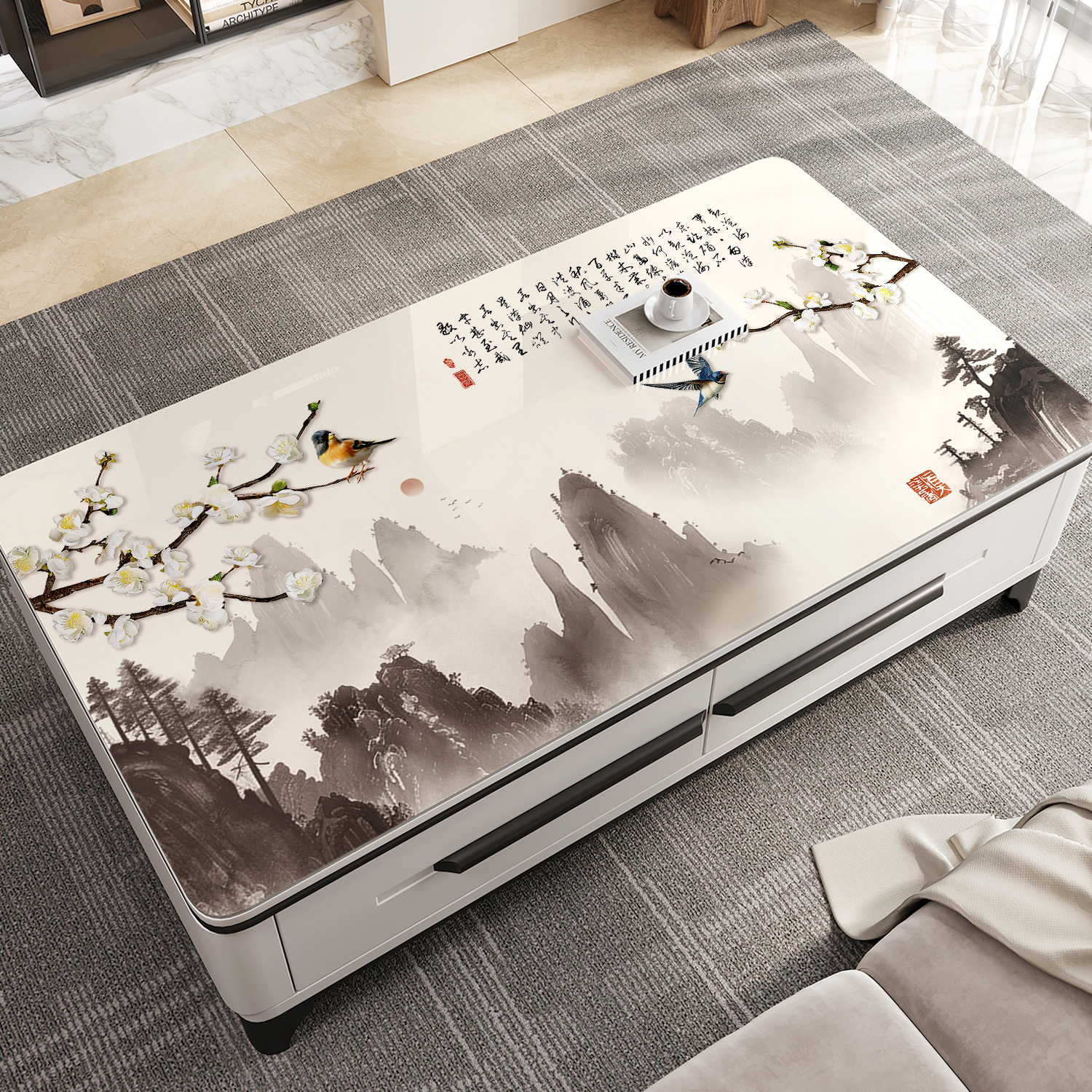 Guofeng 잉크 그림 커피 테이블 테이블 매트 빨 수 있는 방수 데스크탑 보호 매트 빛 고급 고급 거실 커피 테이블 테이블 테이블 테이블 천스토어 가기
