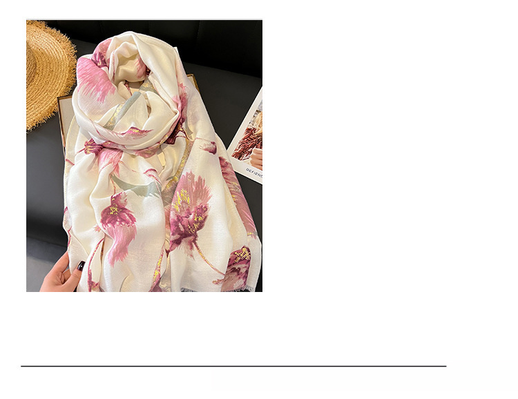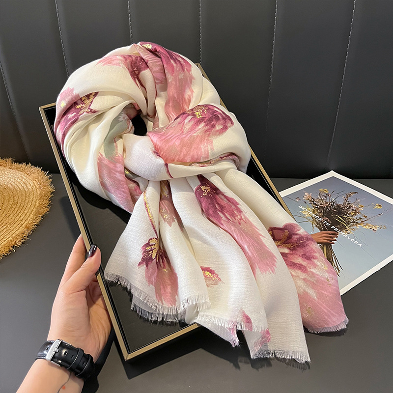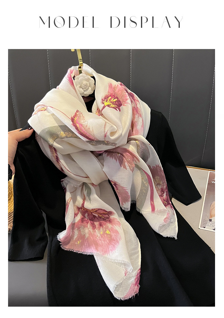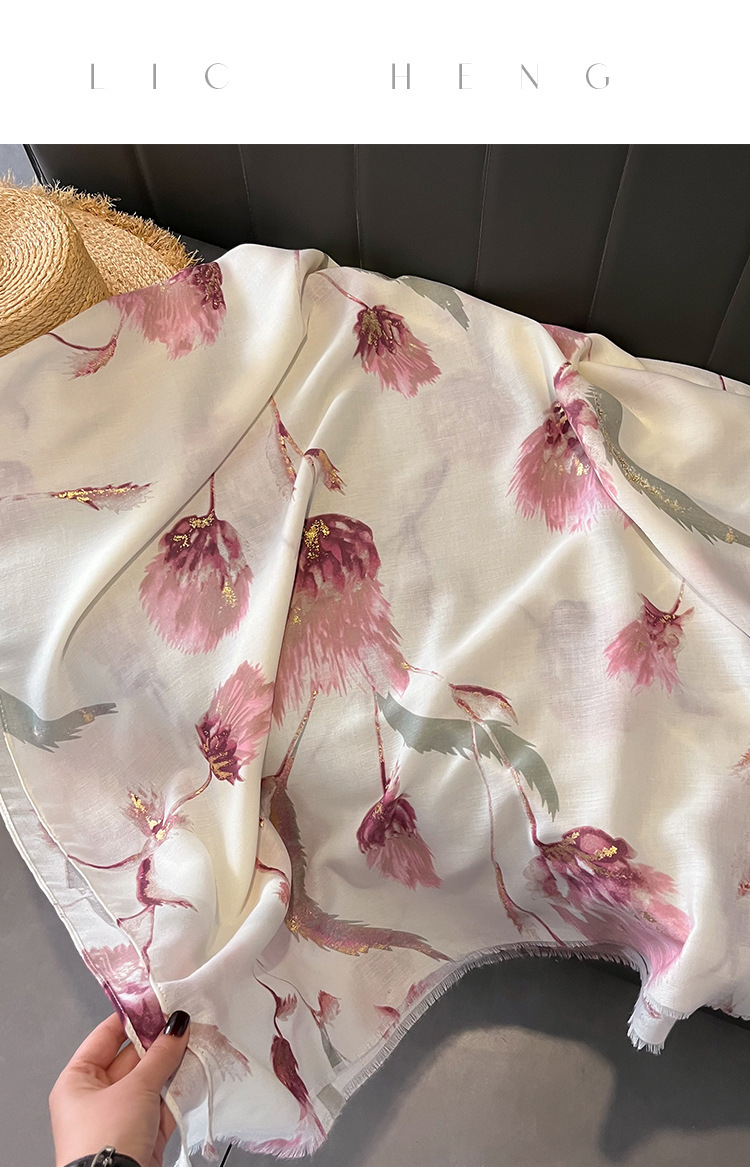 여름 올 매치 홀리데이 스타일 핫 스탬핑 플라워 코튼 및 리넨 스카프 여행 썬 스크린 목도리 듀얼 사용 롱 스카프 비치 타월