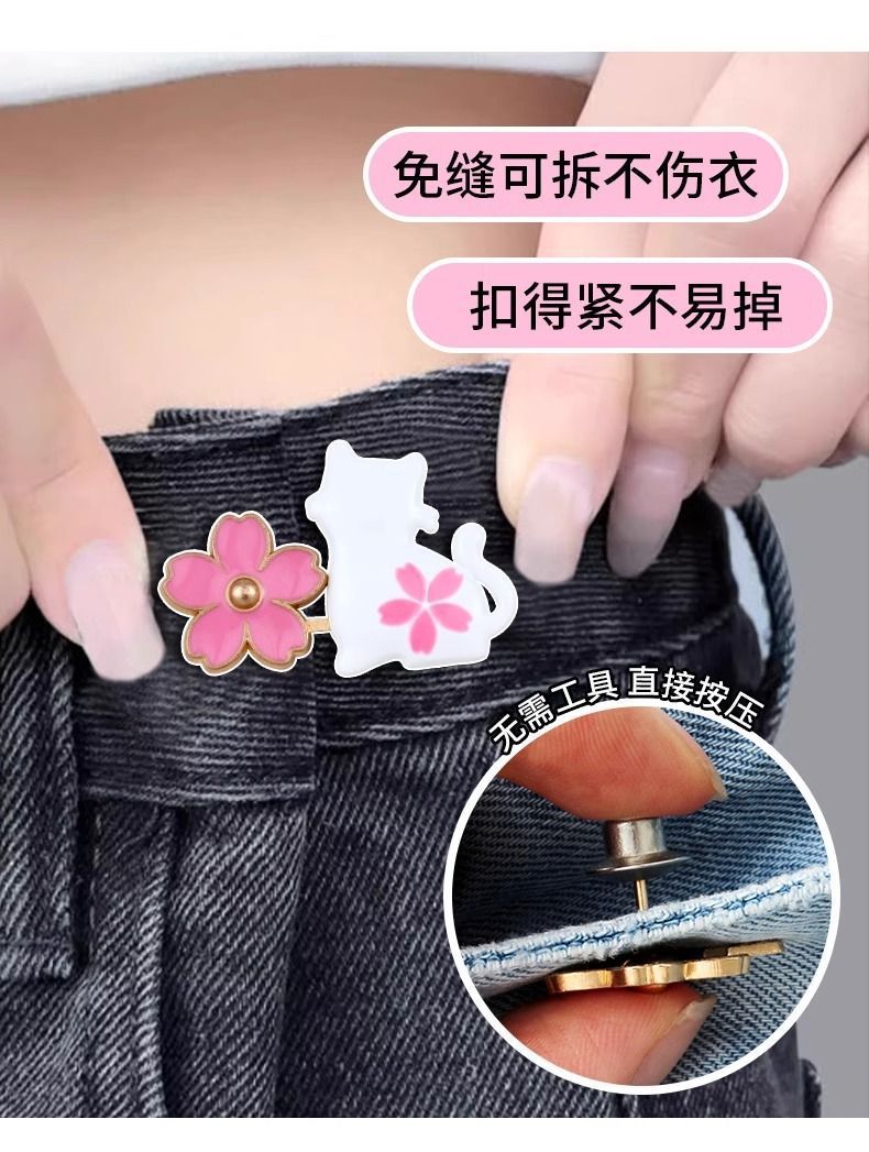 만화 바지 허리 단단한 버튼 펀치 없는 청바지 허리 감소 작은 조임 인공물스토어 가기