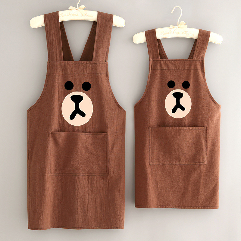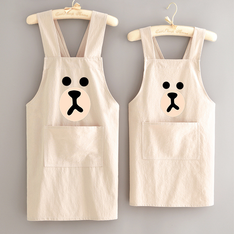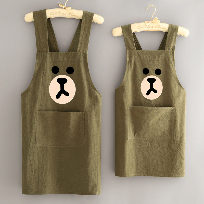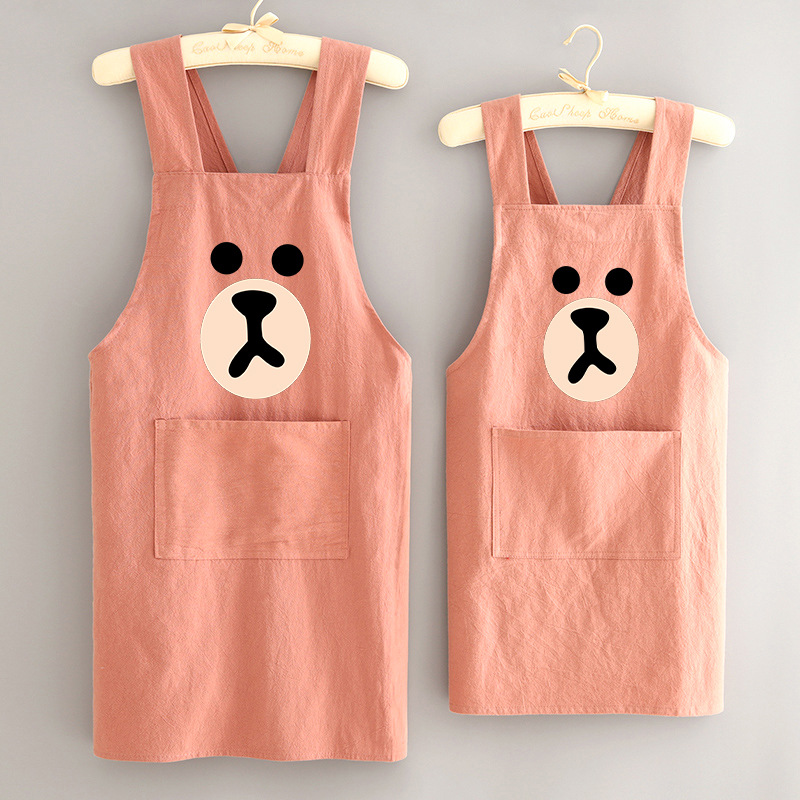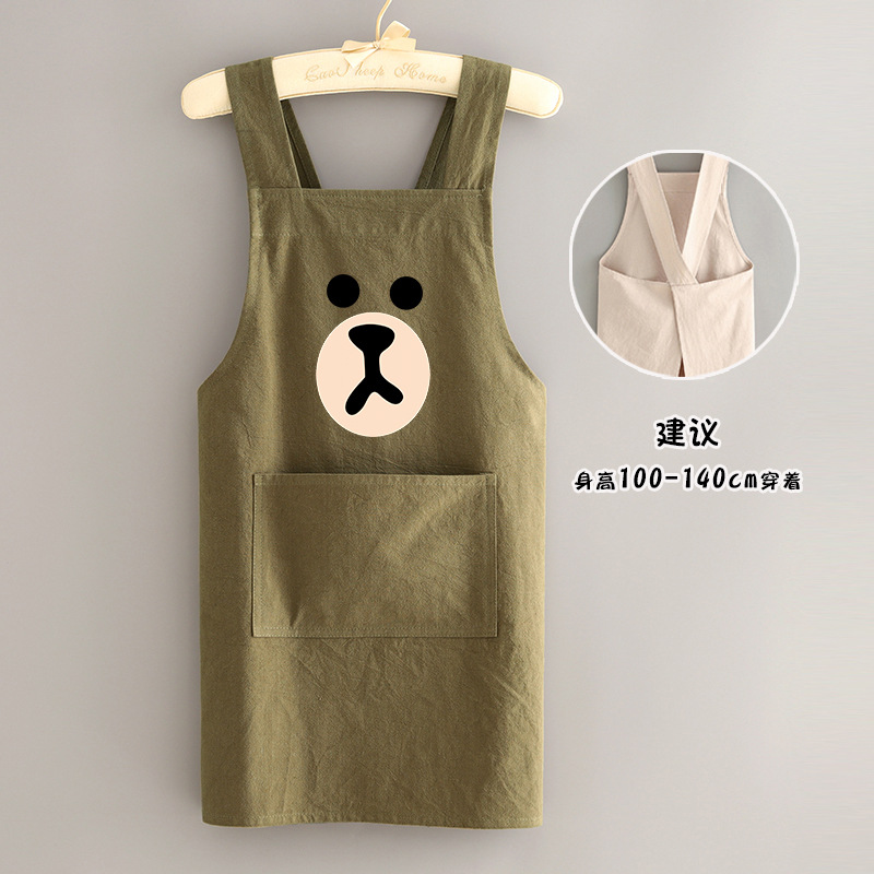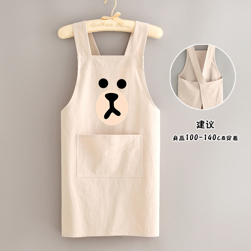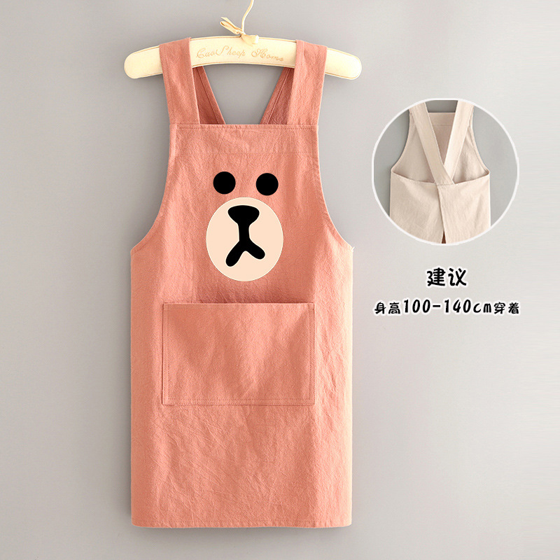 부모-자식 면화 및 리넨 앞치마 주방 가정용 방오 통기성 요리 작업 옷 어린이 귀여운 그림 허리 인쇄 여성
