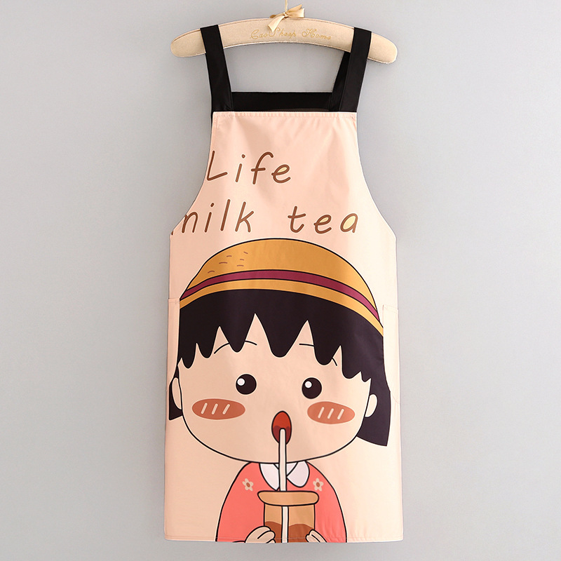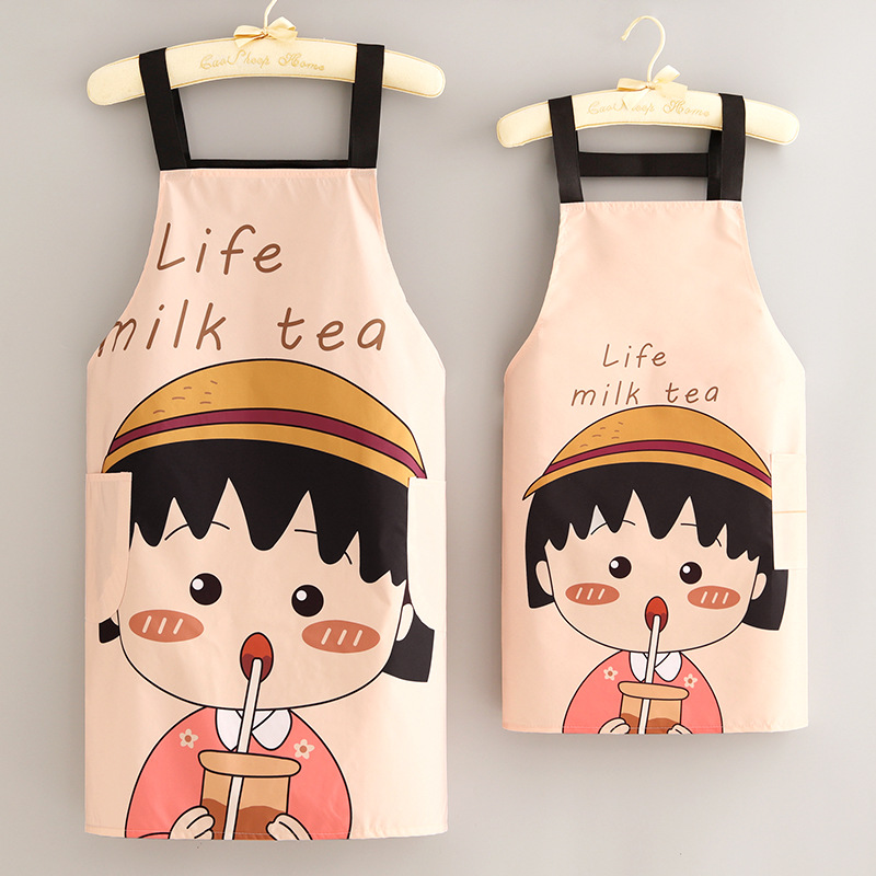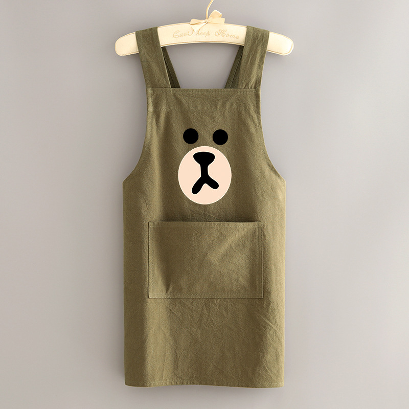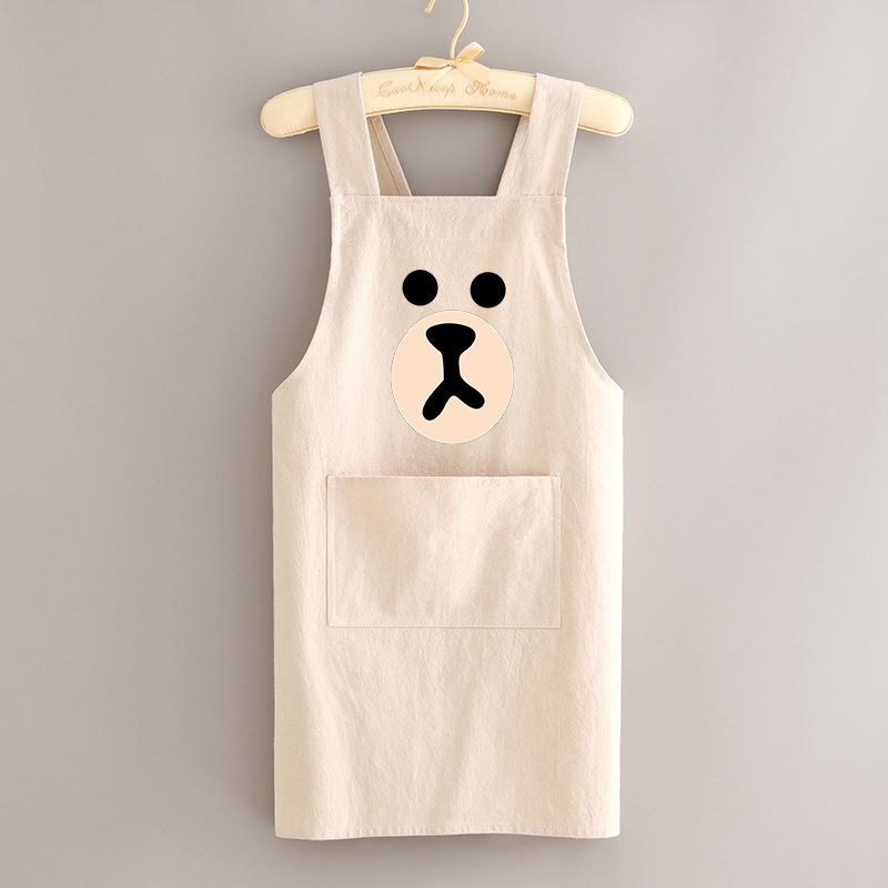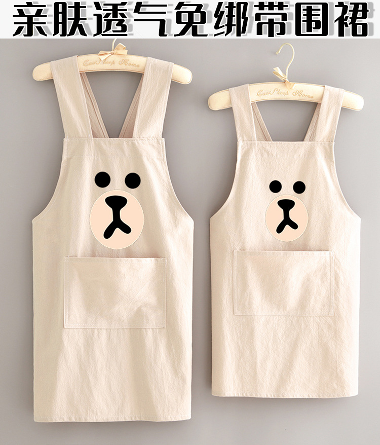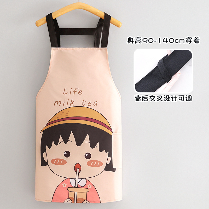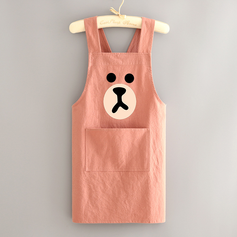 부모-자식 면화 및 리넨 앞치마 주방 가정용 방오 통기성 요리 작업 옷 어린이 귀여운 그림 허리 인쇄 여성