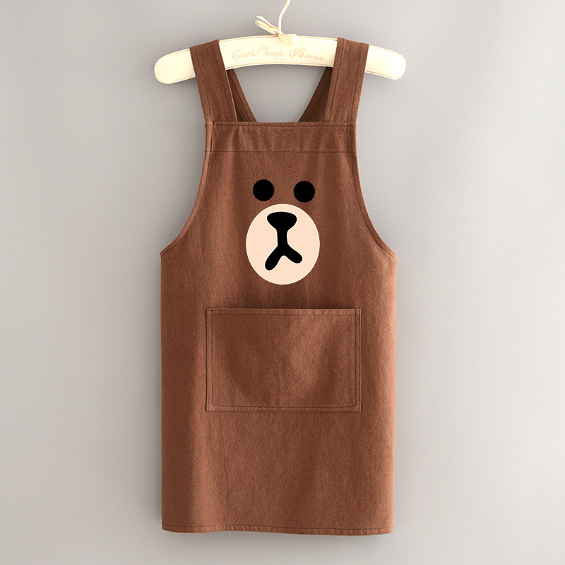 부모-자식 면화 및 리넨 앞치마 주방 가정용 방오 통기성 요리 작업 옷 어린이 귀여운 그림 허리 인쇄 여성스토어 가기