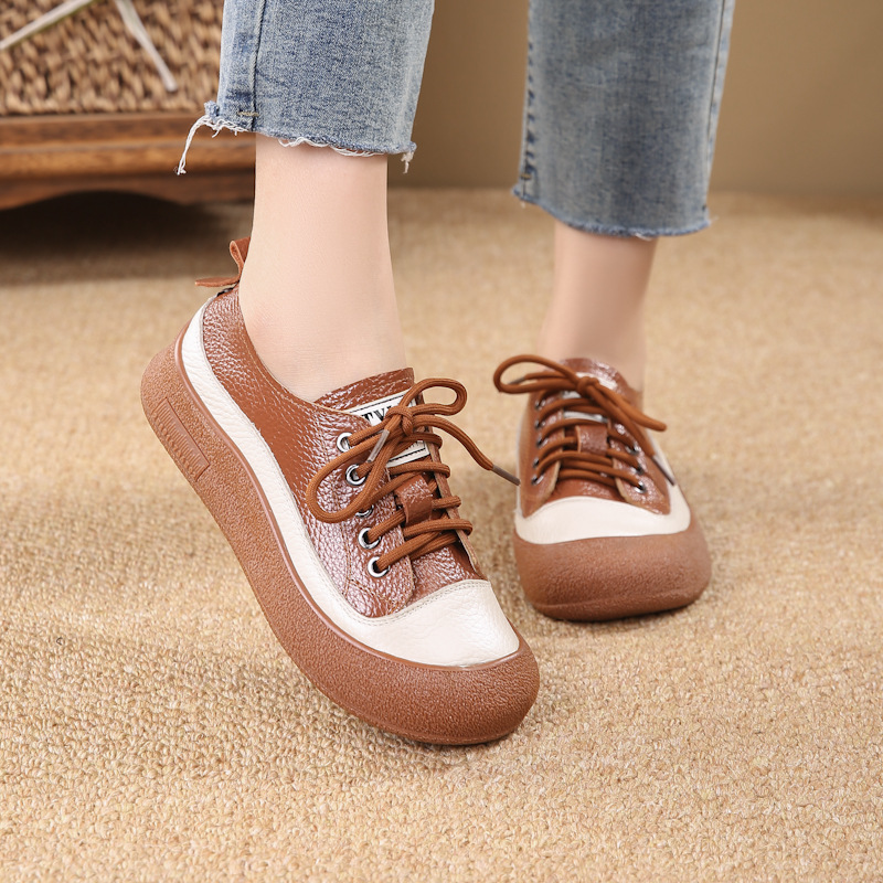 오리지널 수제 복고풍 엄마 신발 폭발 1 층 소 가죽 싱글 신발 부드러운 밑창 여성 신발 캐주얼 플랫 신발스토어 가기