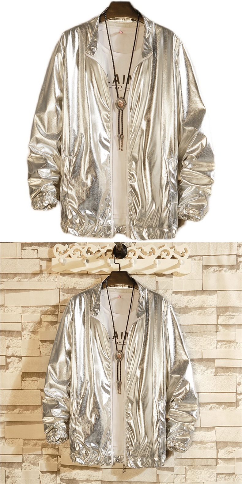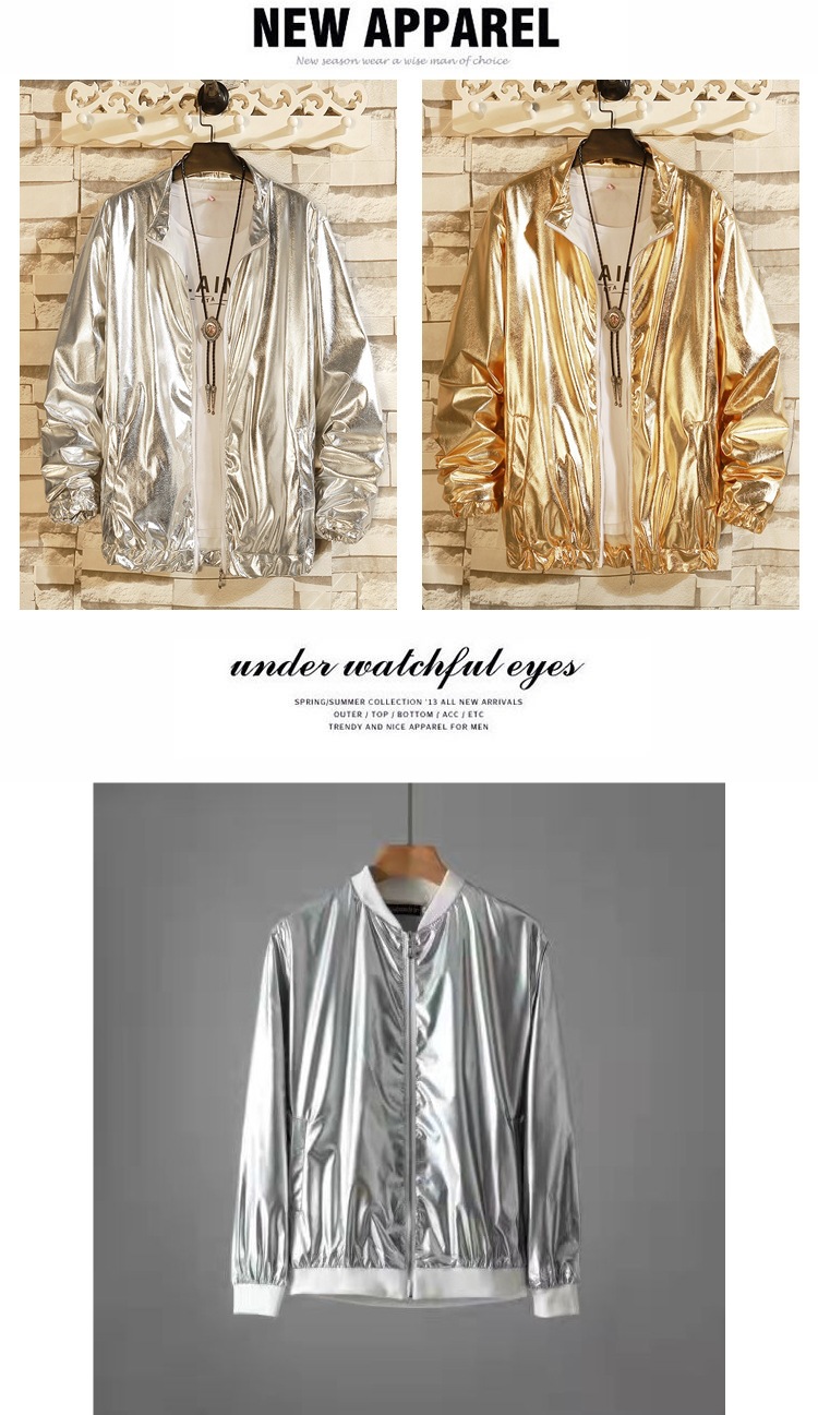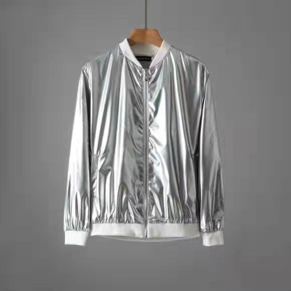 25 봄과 가을 대외 무역 새로운 남성 캐주얼 루즈 재킷 남자 밝은 공연 의류 팀 느슨한 재킷 코트