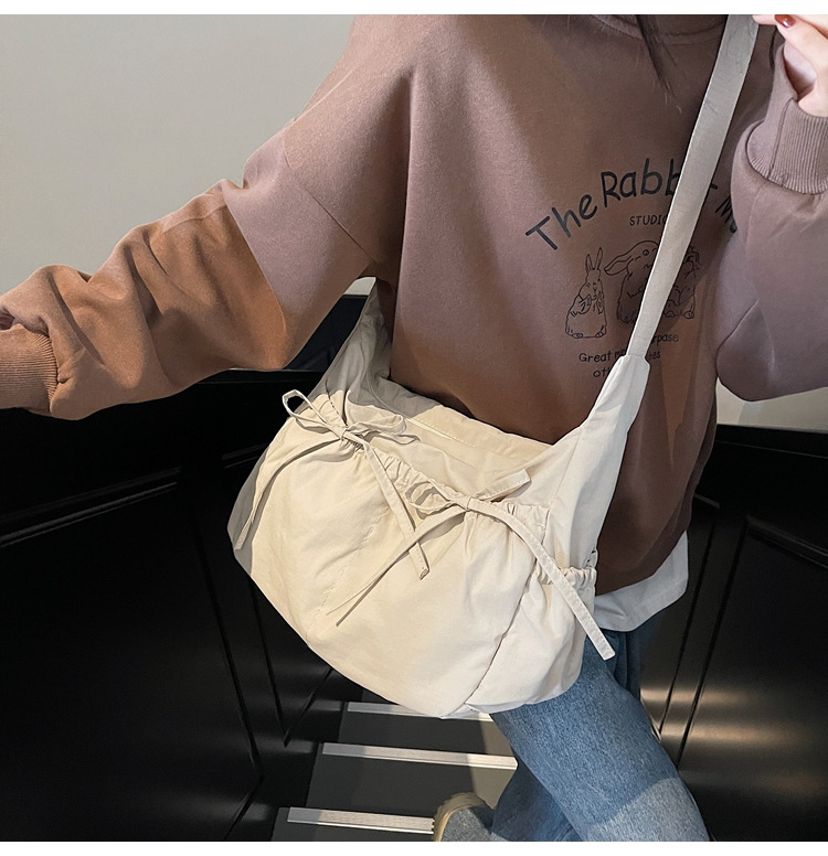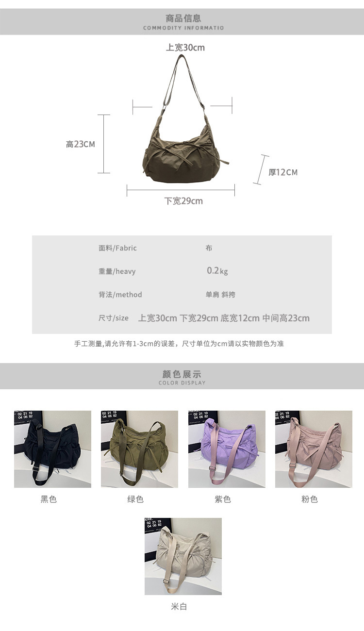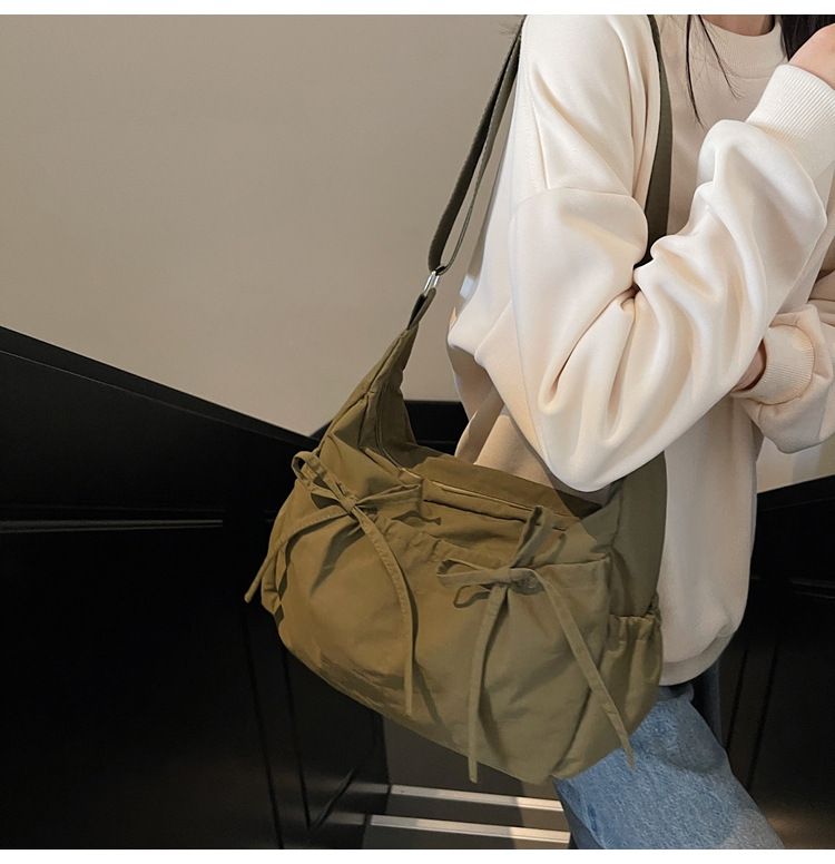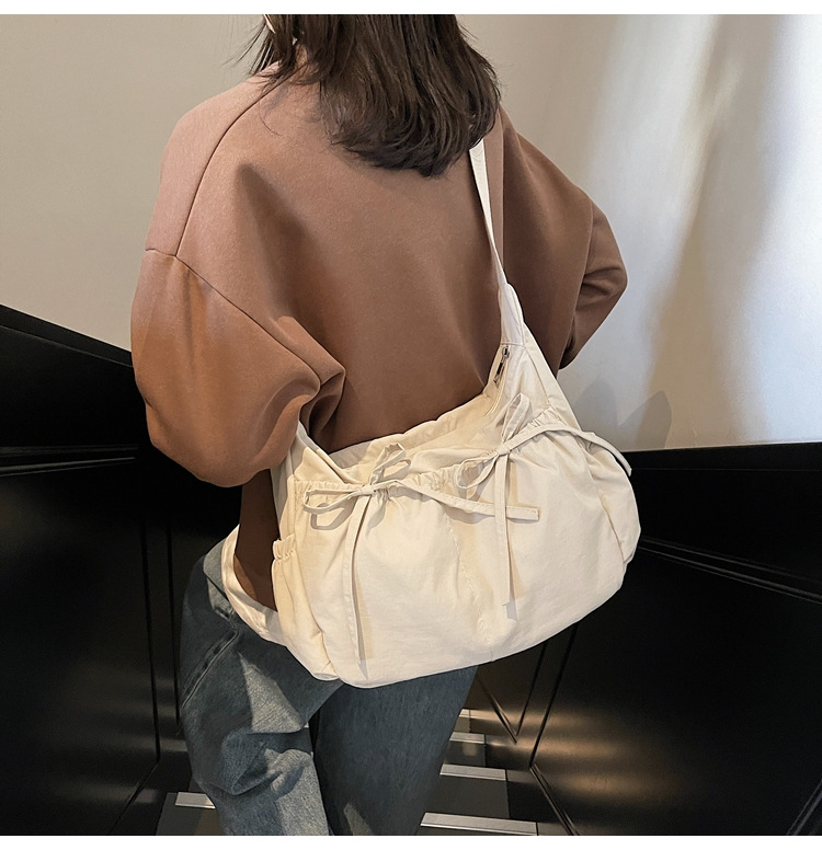 2025 봄 새로운 캐주얼 여성 크로스 바디 백 간단한 대용량 여행 가방 예술적 단색 학생 어깨 가방스토어 가기